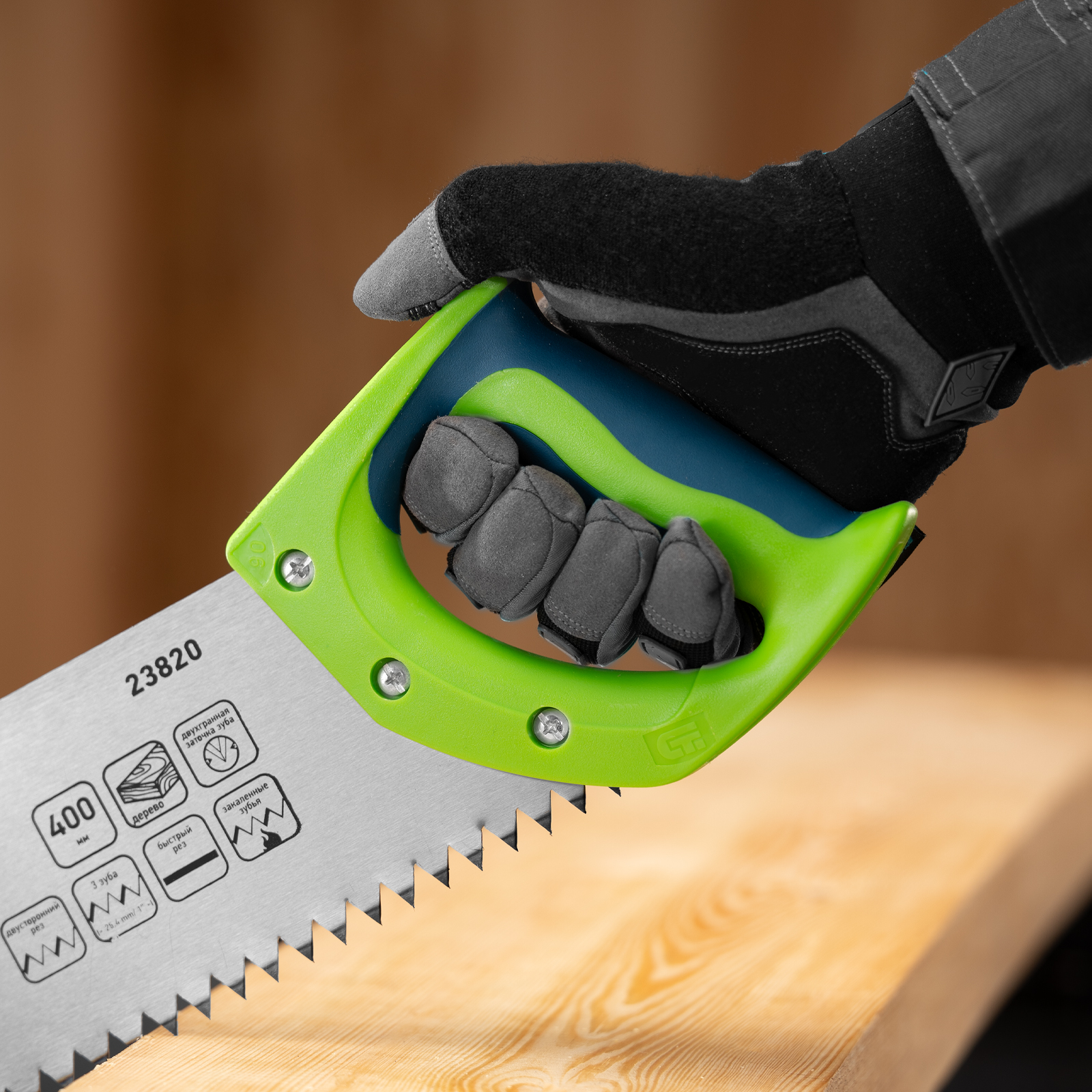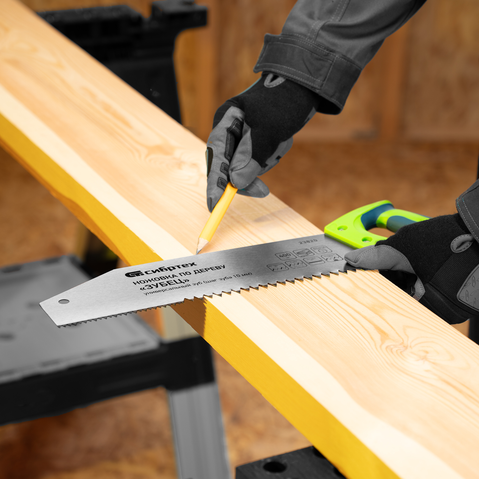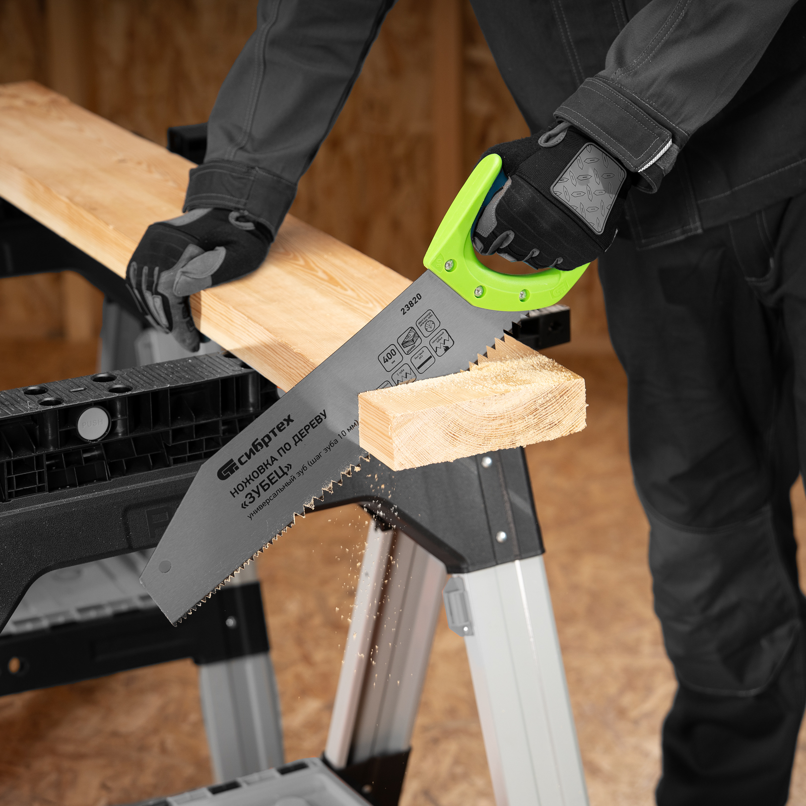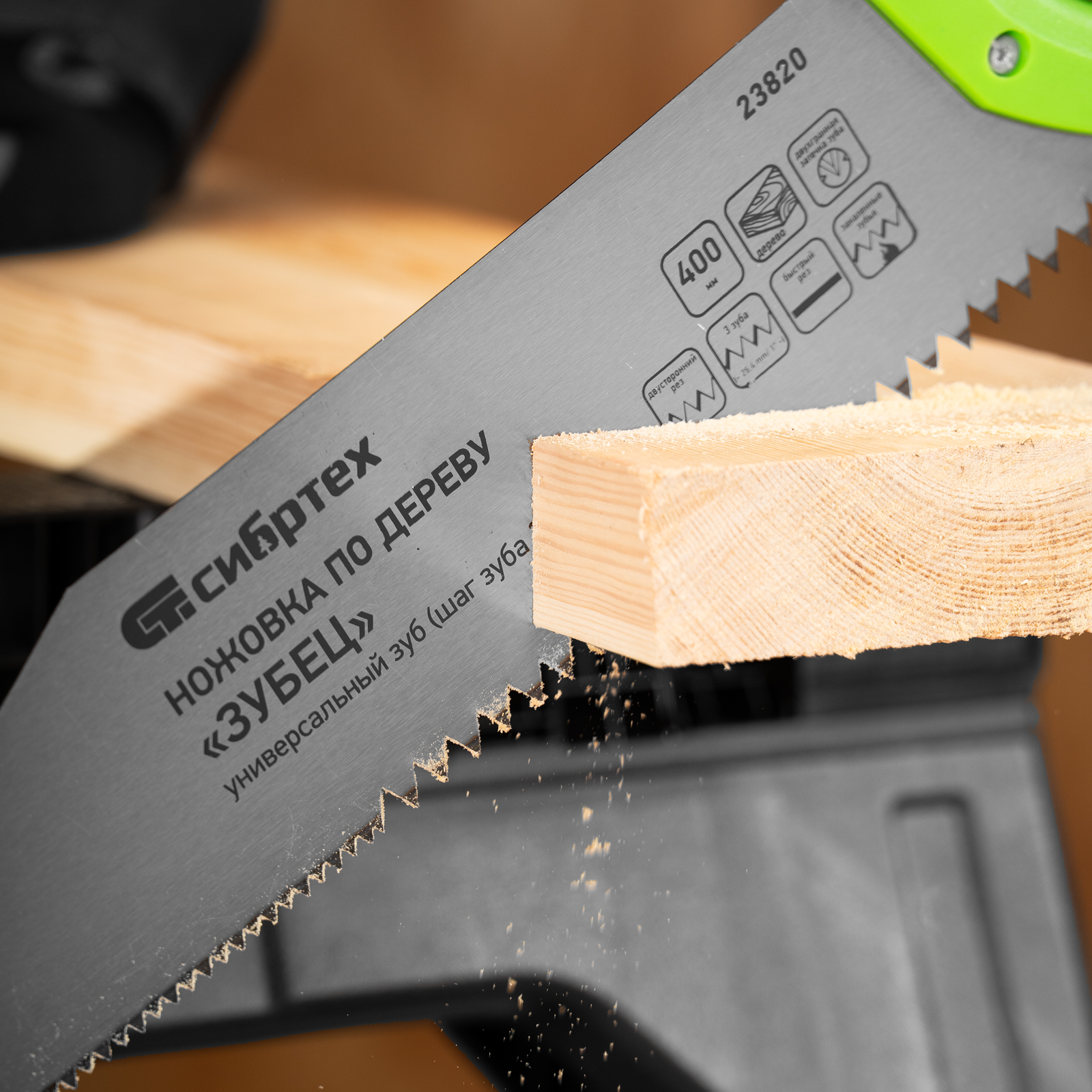 Ножовка по дереву Сибртех «Зубец» 23820 с полотном длиной 400 м, с калеными зубьями с шагом 10 мм и 2D-заточкой, с двухкомпонентной рукояткой, используется для продольного и поперечного пиления древесины и ДСП. Рабочая кромка с шагом зубьев 10 мм обеспечивает быстрый двусторонний рез. Возможна заточка режущей части при необходимости. Ножовка применяется для выполнения плотницких работ, пригодится также и в быту.