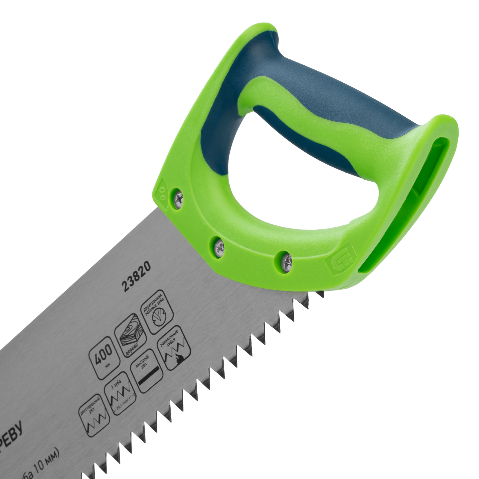- Надежная конструкция — рукоятка из ударопрочного ABS-пластика прикреплена к полотну 3 винтами.