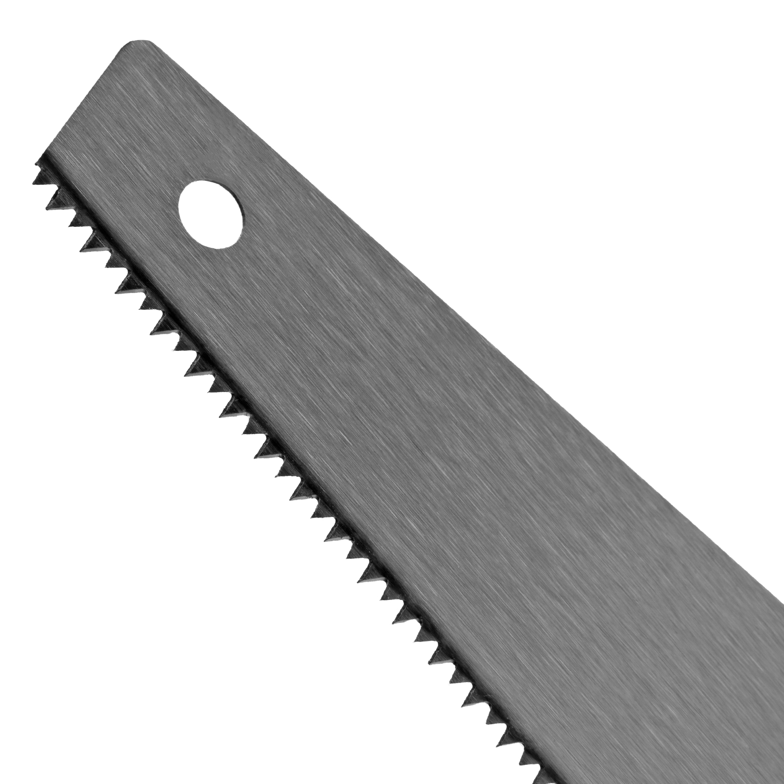 Ножовка по дереву Сибртех «Зубец» 23803 с полотном длиной 450 мм, калеными зубьями с 2D-заточкой и шагом 7-8 TPI, с двухкомпонентной рукояткой, используется для распиливания заготовок из древесины, фанеры и ДСП. Рабочая часть, содержащая 7-8 зубьев на дюйм, обеспечивает быстрый двусторонний рез. Режущую кромку можно перетачивать при необходимости. Ножовка будет полезна столяру, плотнику и домашнему мастеру.