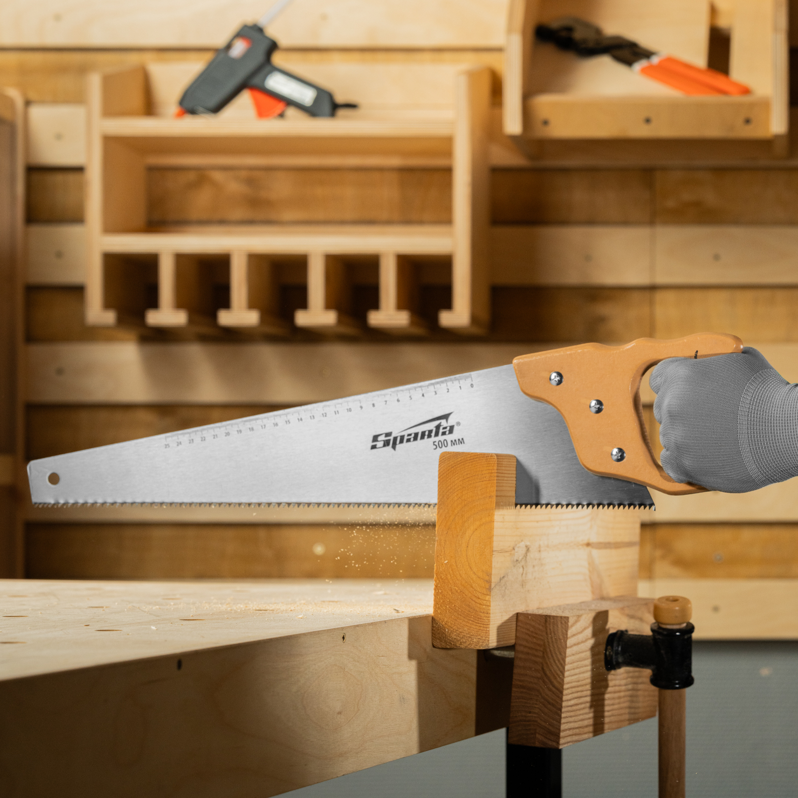Ножовка по дереву, 500 мм, 7-8 TPI, каленый зуб, линейка, деревянная рукоятка Sparta в Уфе