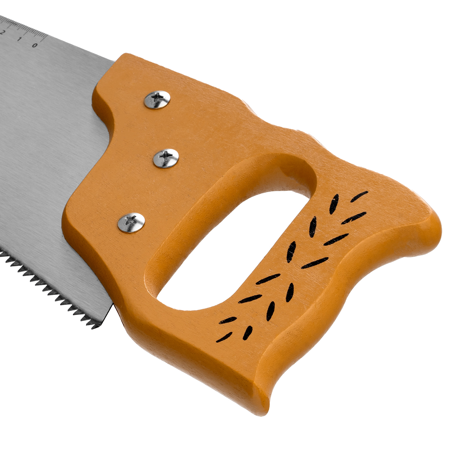 Ножовка по дереву Sparta 231895 с полотном длиной 500 мм, с калеными зубьями с шагом 7-8 TPI, с линейкой и деревянной рукояткой, предназначена для продольно-поперечного распиливания древесины. Благодаря зубьям с 2D-заточкой подходит для двухстороннего реза. Режущую кромку можно перетачивать. На полотно нанесена измерительная шкала, позволяющая производить замеры, не тратя время на поиск линейки. Ножовка используется в столярном и плотницком деле, а также полезна дома и на даче.
