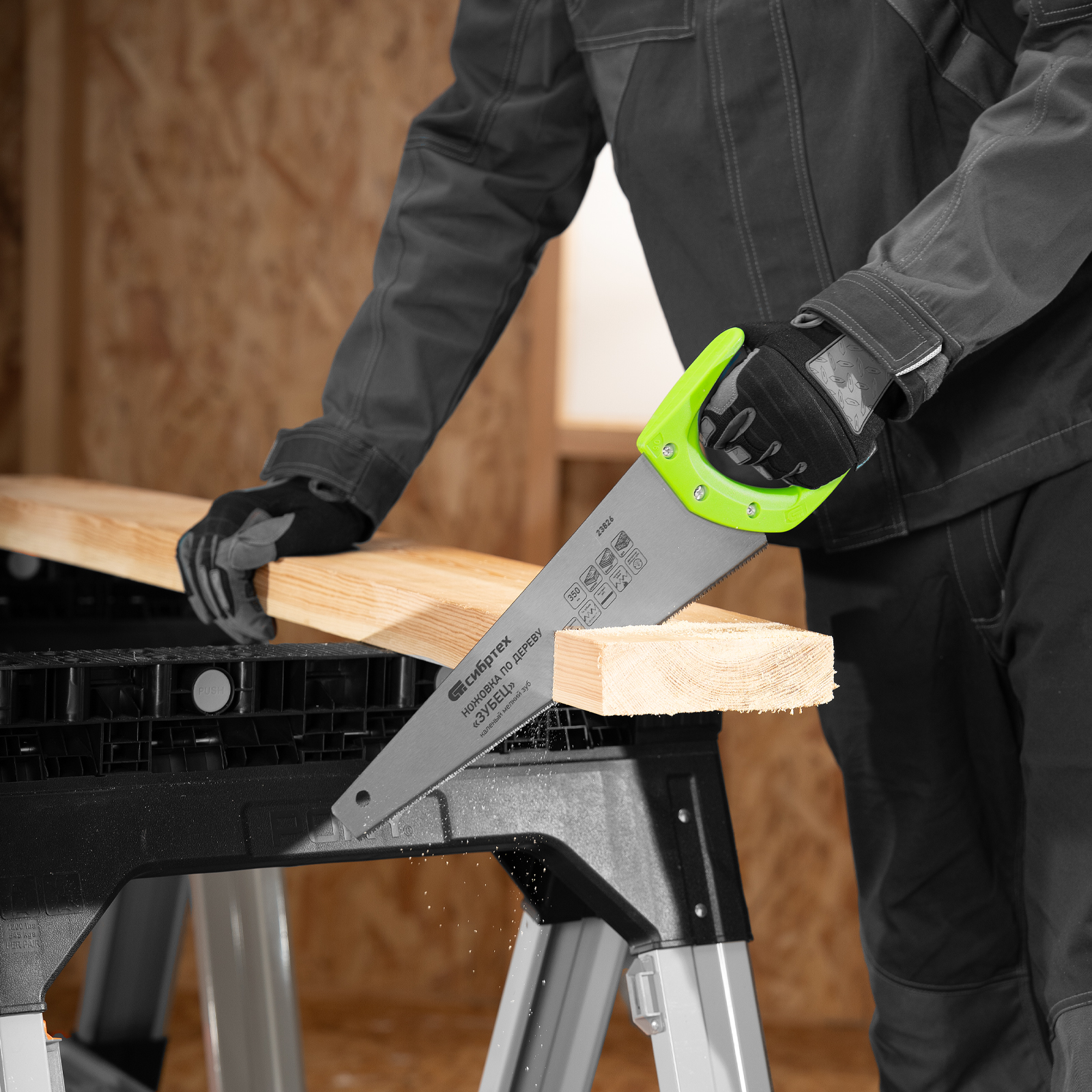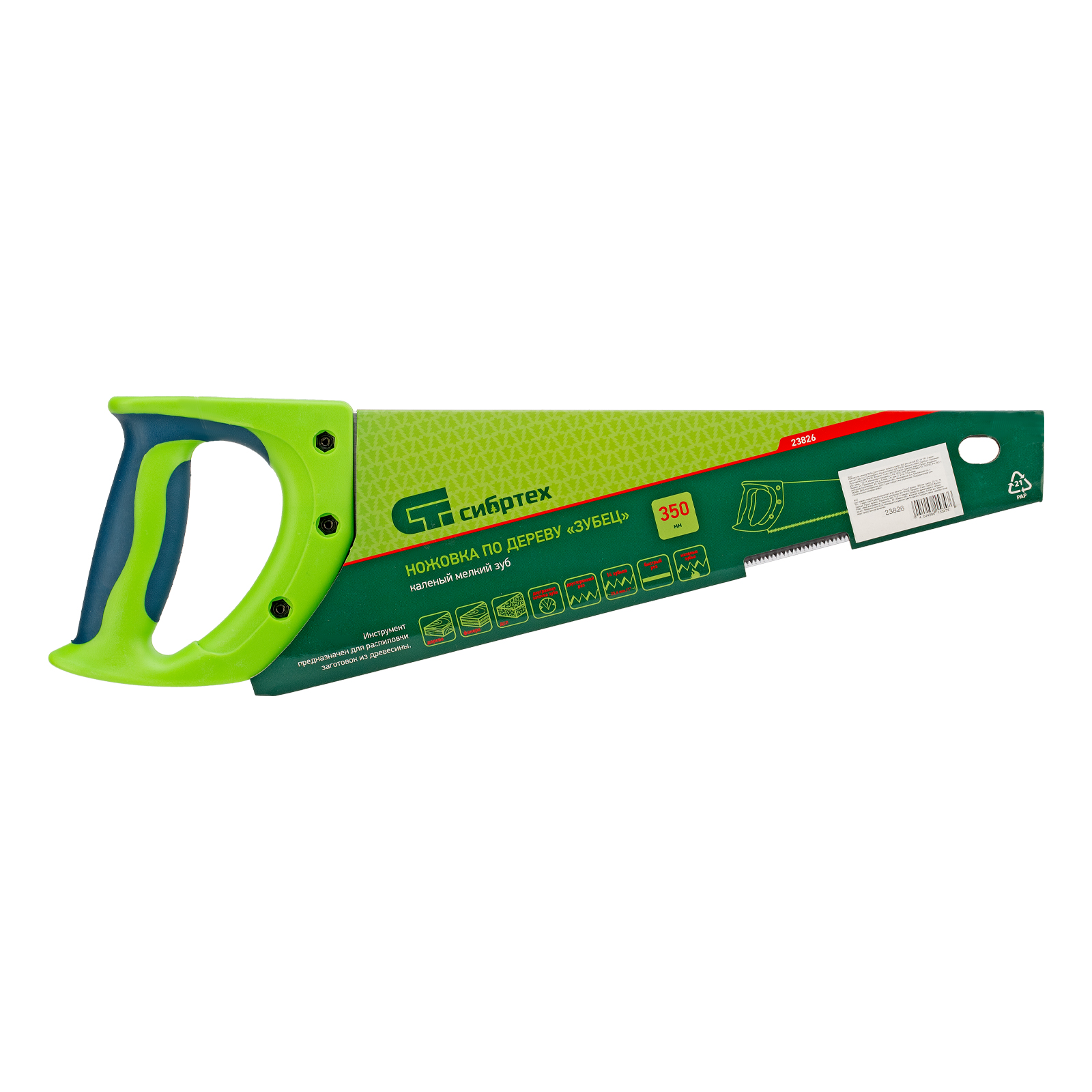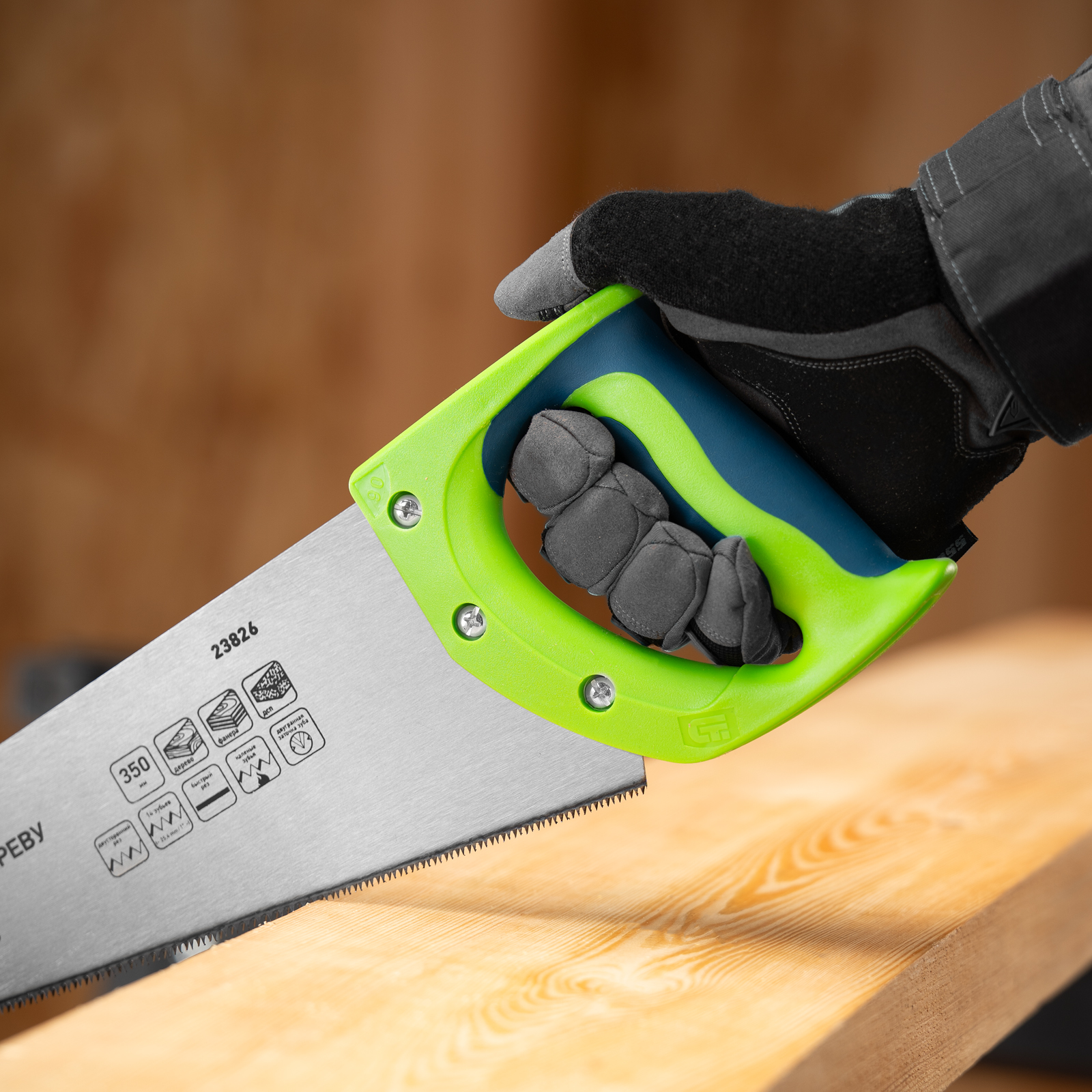 - Комфорт во время работы — рукоятка обрезинена, поэтому не скользит в ладони и снижает нагрузку на кисть руки во время длительного пиления.