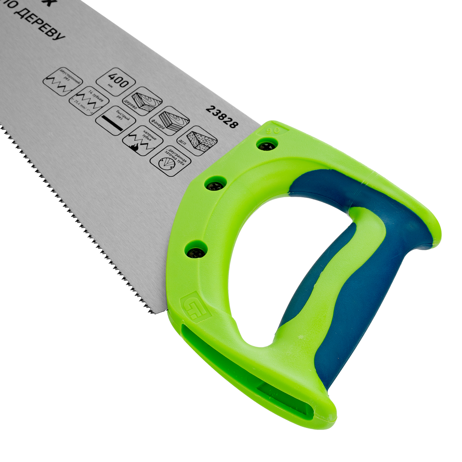 - Комфорт во время работы — рукоятка обрезинена, поэтому не скользит в ладони и снижает нагрузку на кисть руки во время длительного пиления.