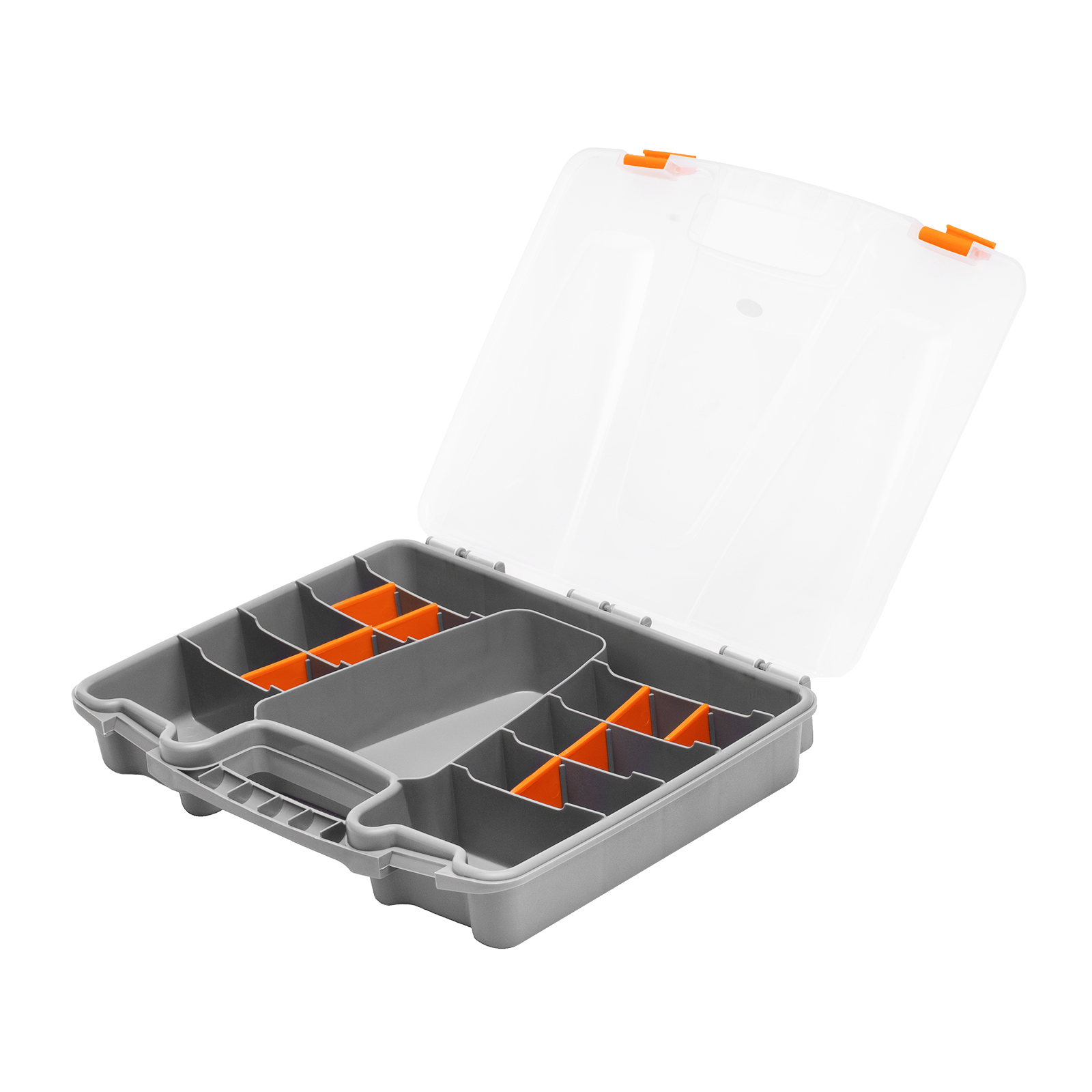 Органайзер из пластика Stels 90708 размером 370 х 280 х 60 мм позволяет обустроить практичное место хранения мелких деталей. Также его удобно брать с собой на выездные работы. Органайзер помогает поддерживать порядок в мастерской и предотвращает потерю деталей.