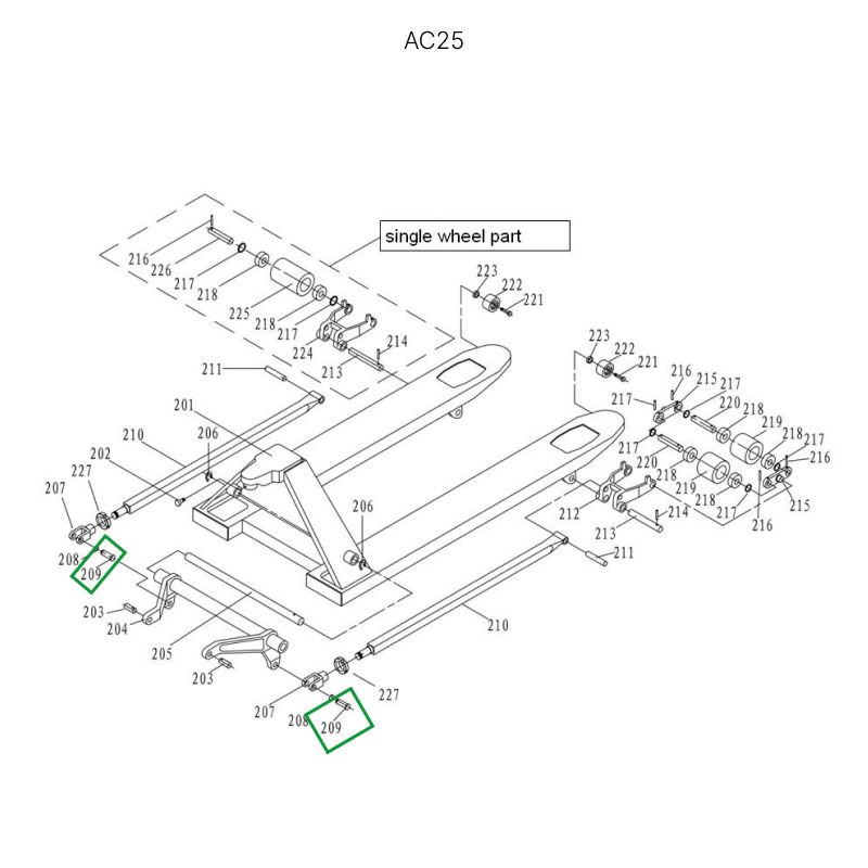 Ось крепления углового рычага к подвильной тяге для гидравлических тележек DF25 в Уфе
