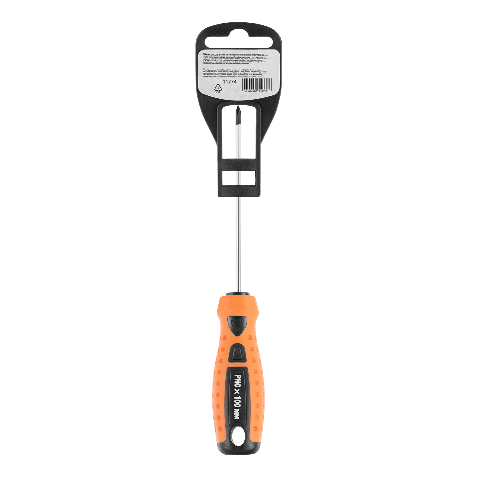 Отвертка Sparta «Point» 11774 из стали CrV, с 2-х компонентной рукояткой, подходит для монтажа/демонтажа крестового крепежа PH0. Она поможет мастерам провести мелкие бытовые работы в доме или автомастерской. Отвертка оснащена стержнем длиной 100 мм для работы на поверхностях и в углублениях.