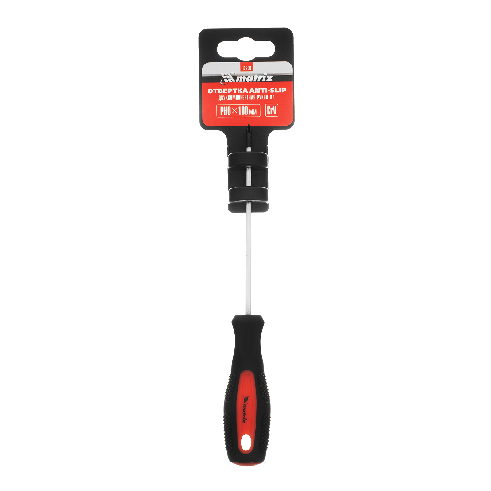 Отвертка Anti-Slip, PH0 х 100 мм, CrV, двухкомпонентная рукоятка Matrix в Уфе