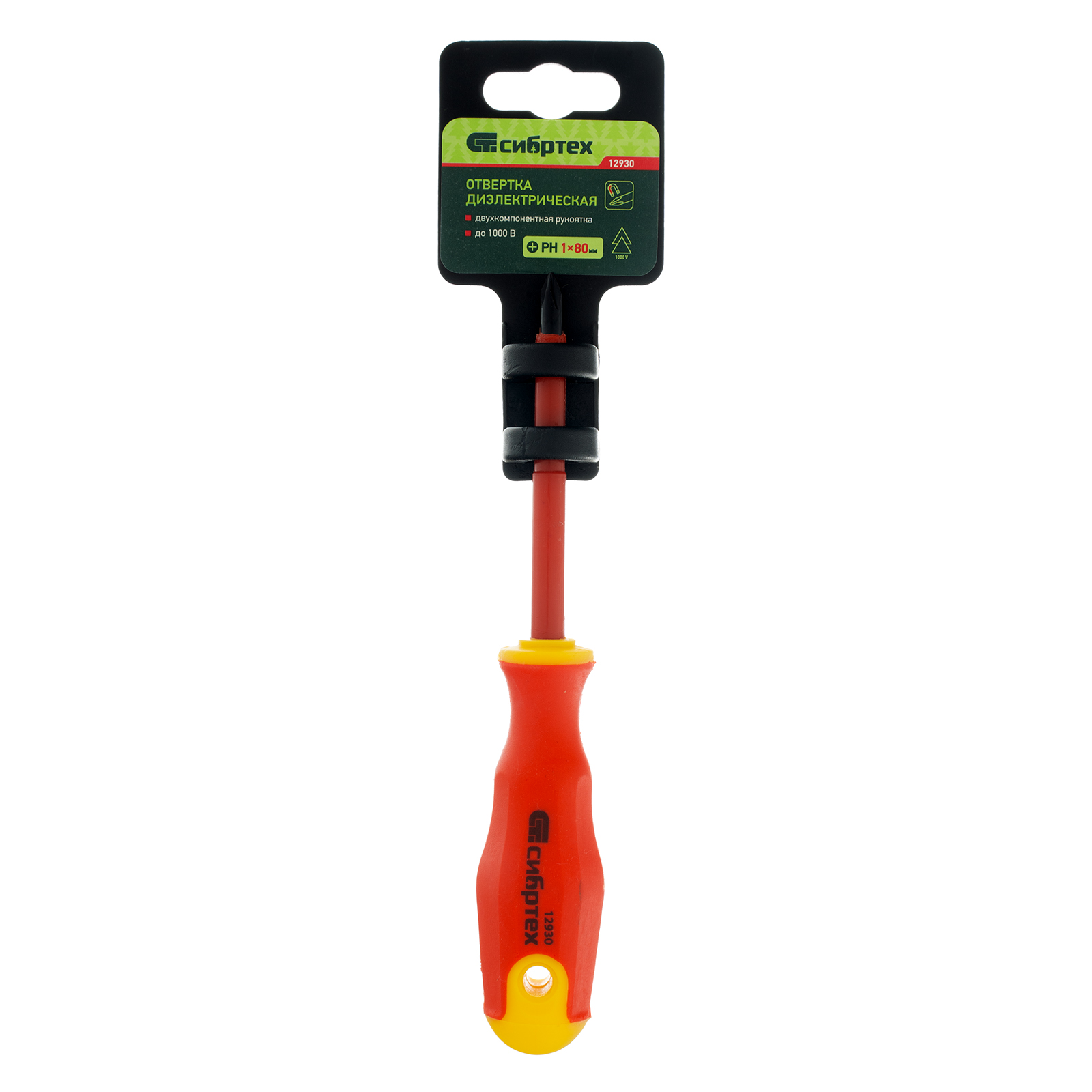 Отвертка диэлектрическая PH1 х 80 мм, CrV, до 1000 В, двухкомпонентная рукоятка Сибртех в Уфе
