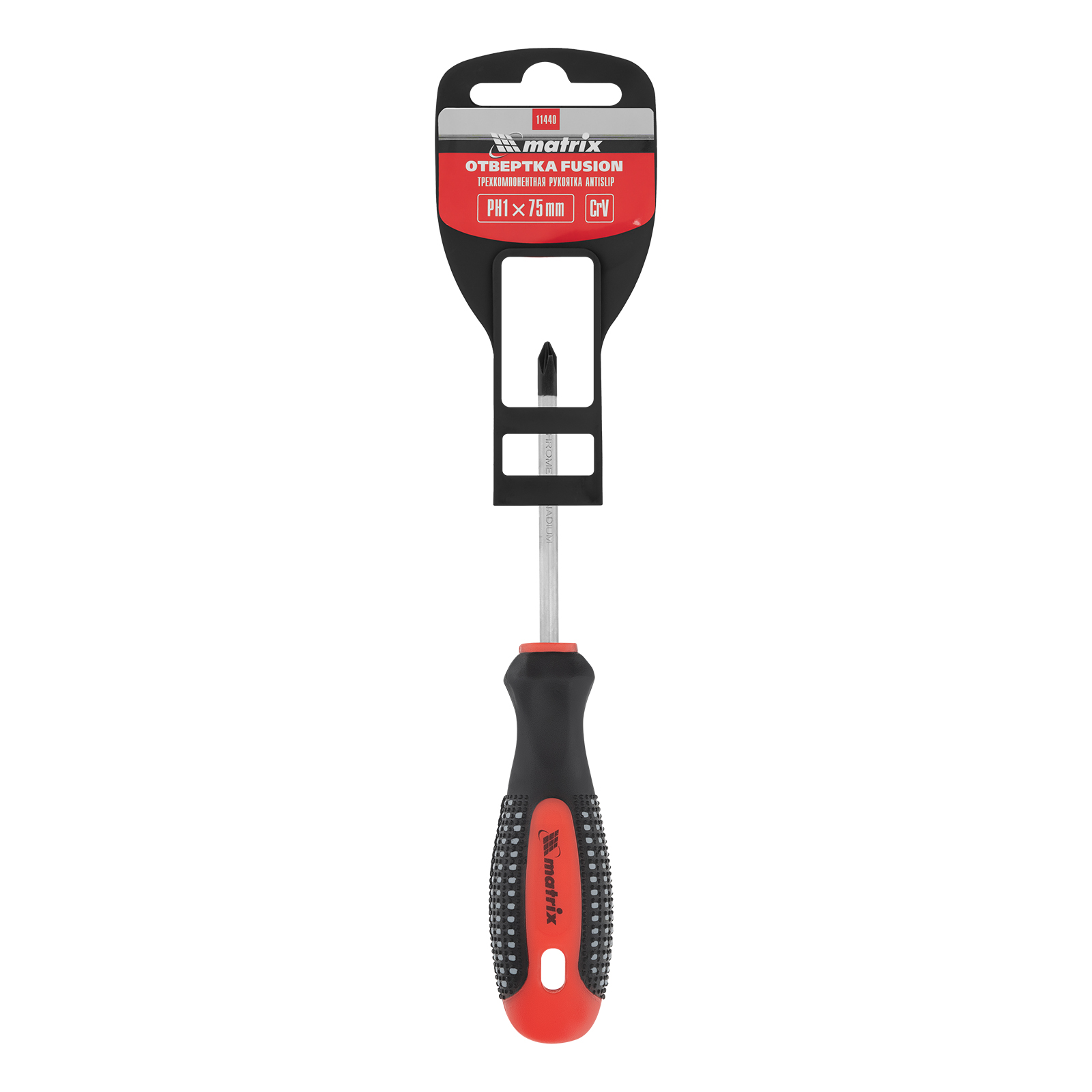Отвертка Fusion, PH1 х 75 мм, CrV, трехкомпонентная рукоятка "Anti slip" Matrix в Уфе