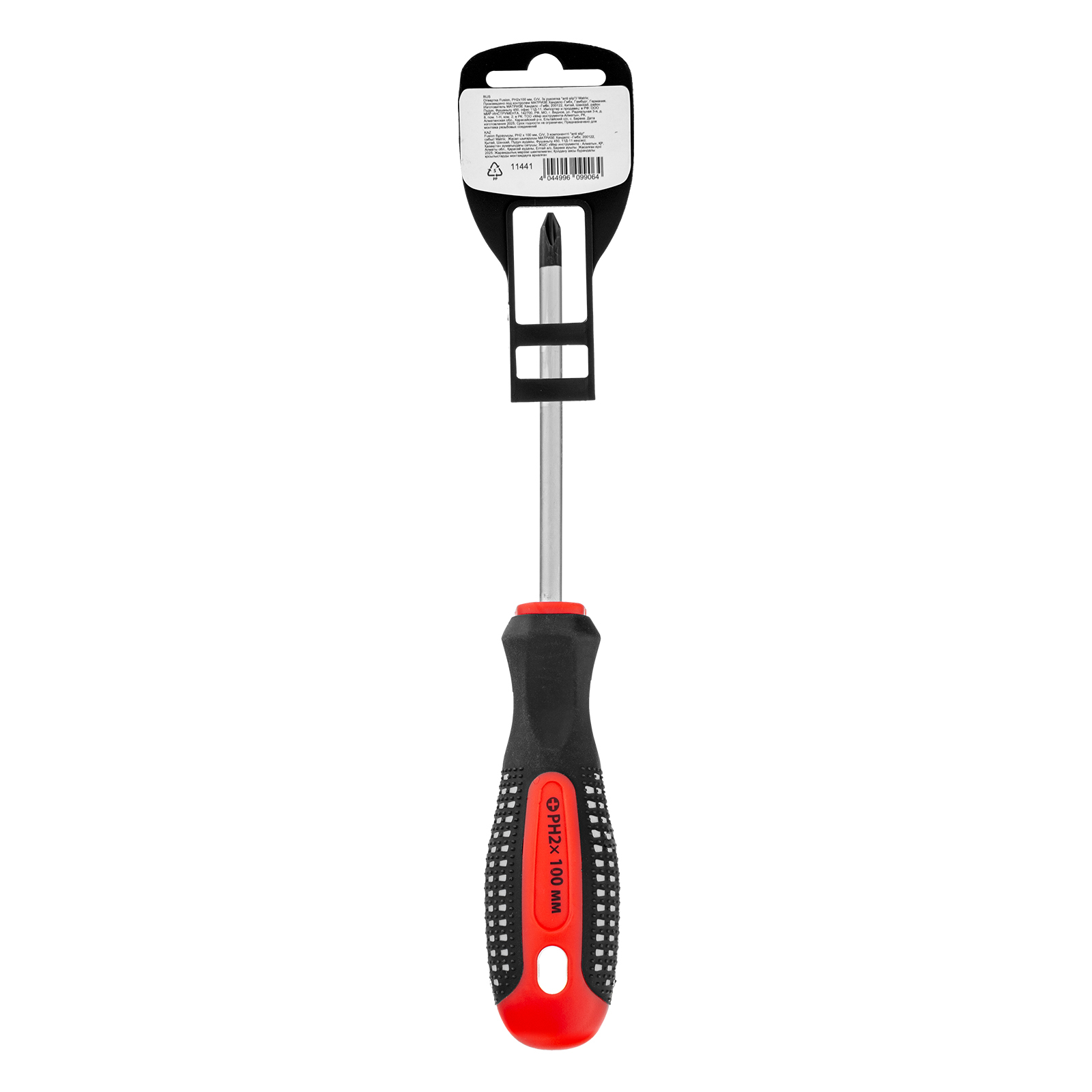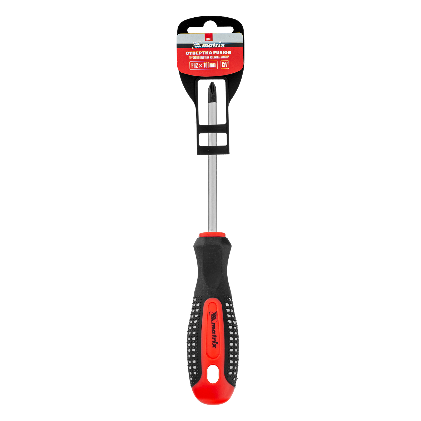 Отвертка Fusion, PH2 х 100 мм, CrV, трехкомпонентная рукоятка "Anti slip" Matrix в Уфе