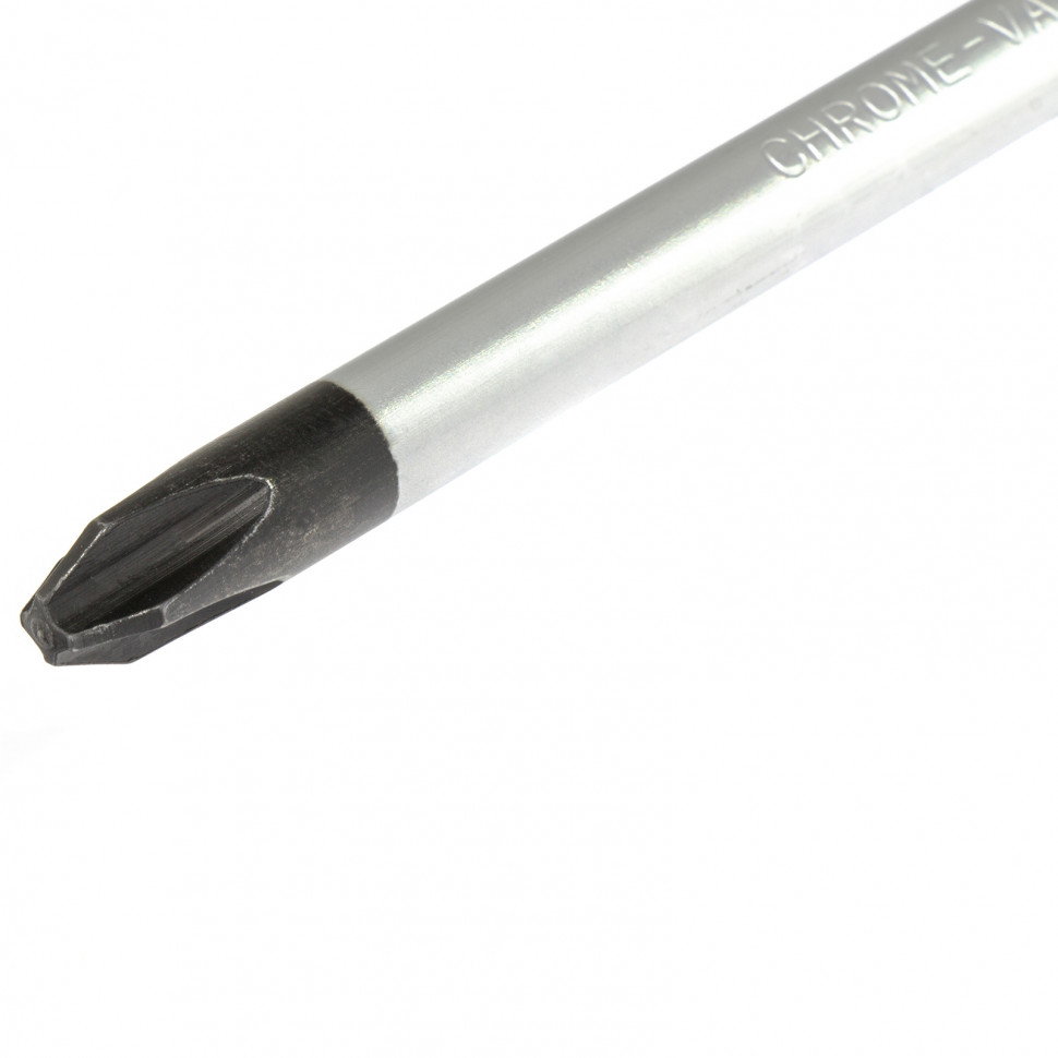 - Стержень и жало выполнены из износостойкой легированной стали CrV твердостью 50-52 HRC, что обеспечивает долгий срок службы отвертки.