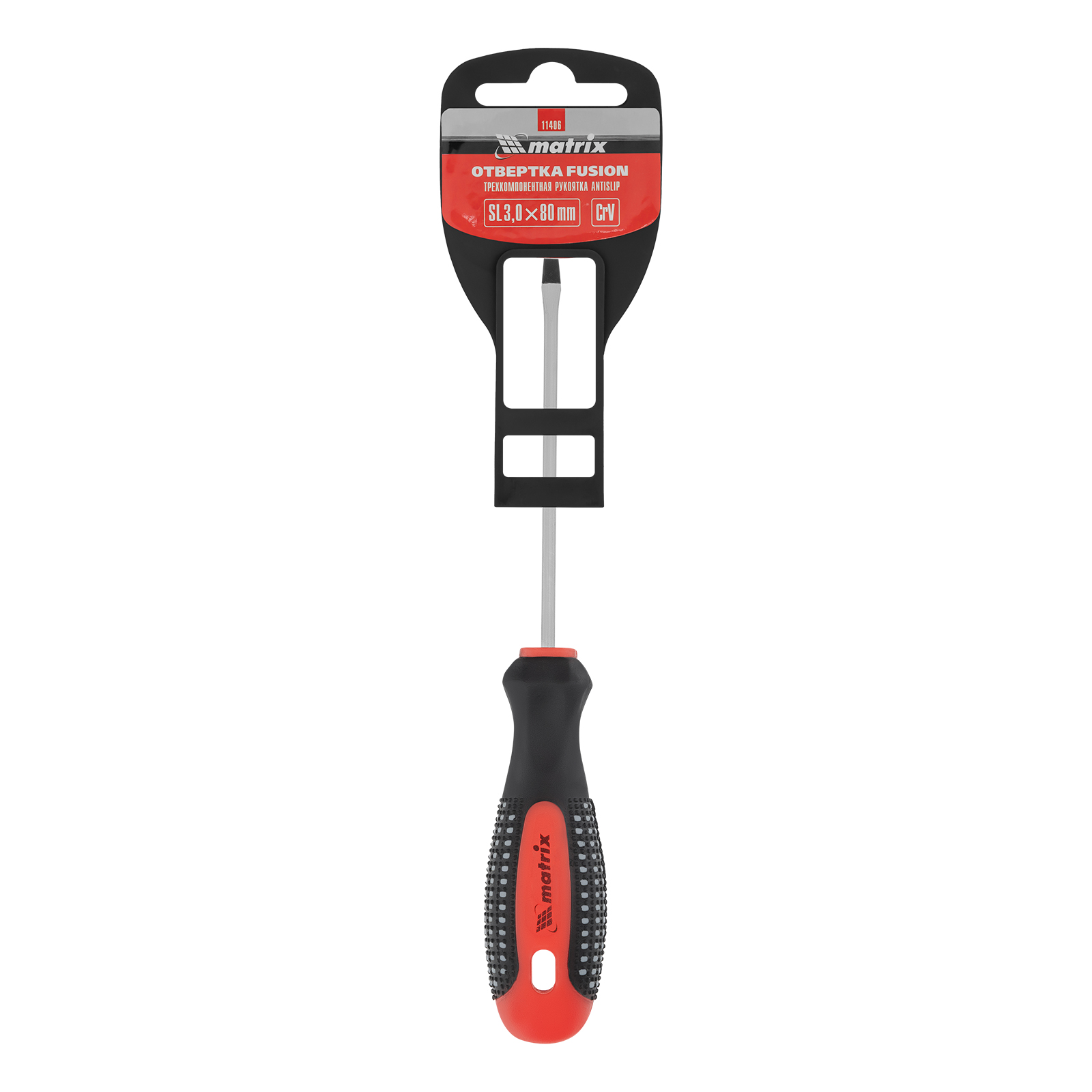 Отвертка Fusion, SL3 х 80 мм, CrV, трехкомпонентная рукоятка "Anti slip" Matrix в Уфе