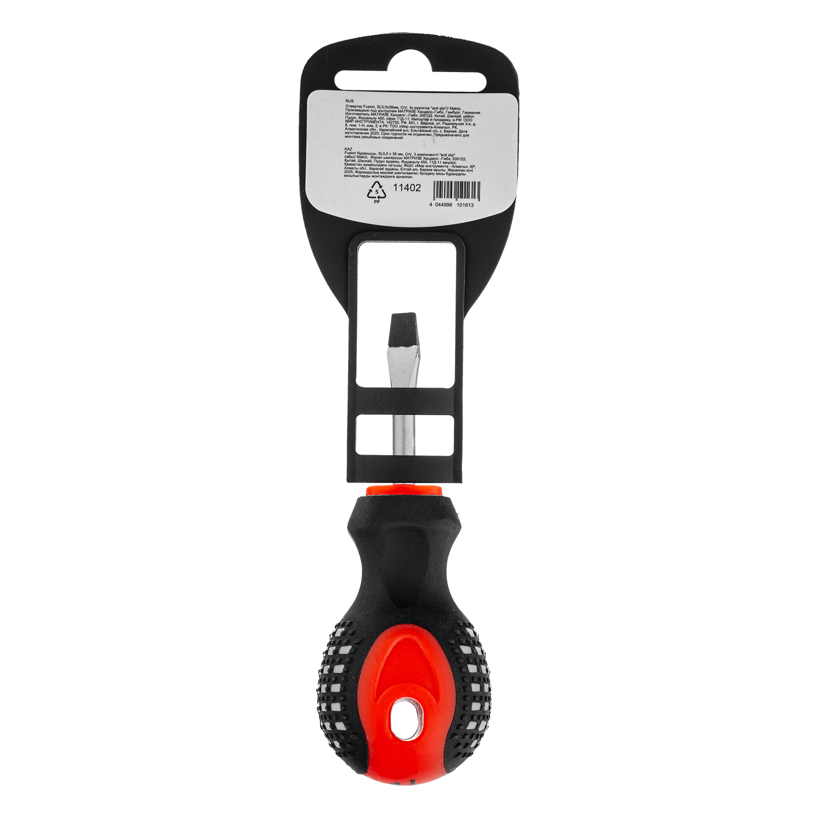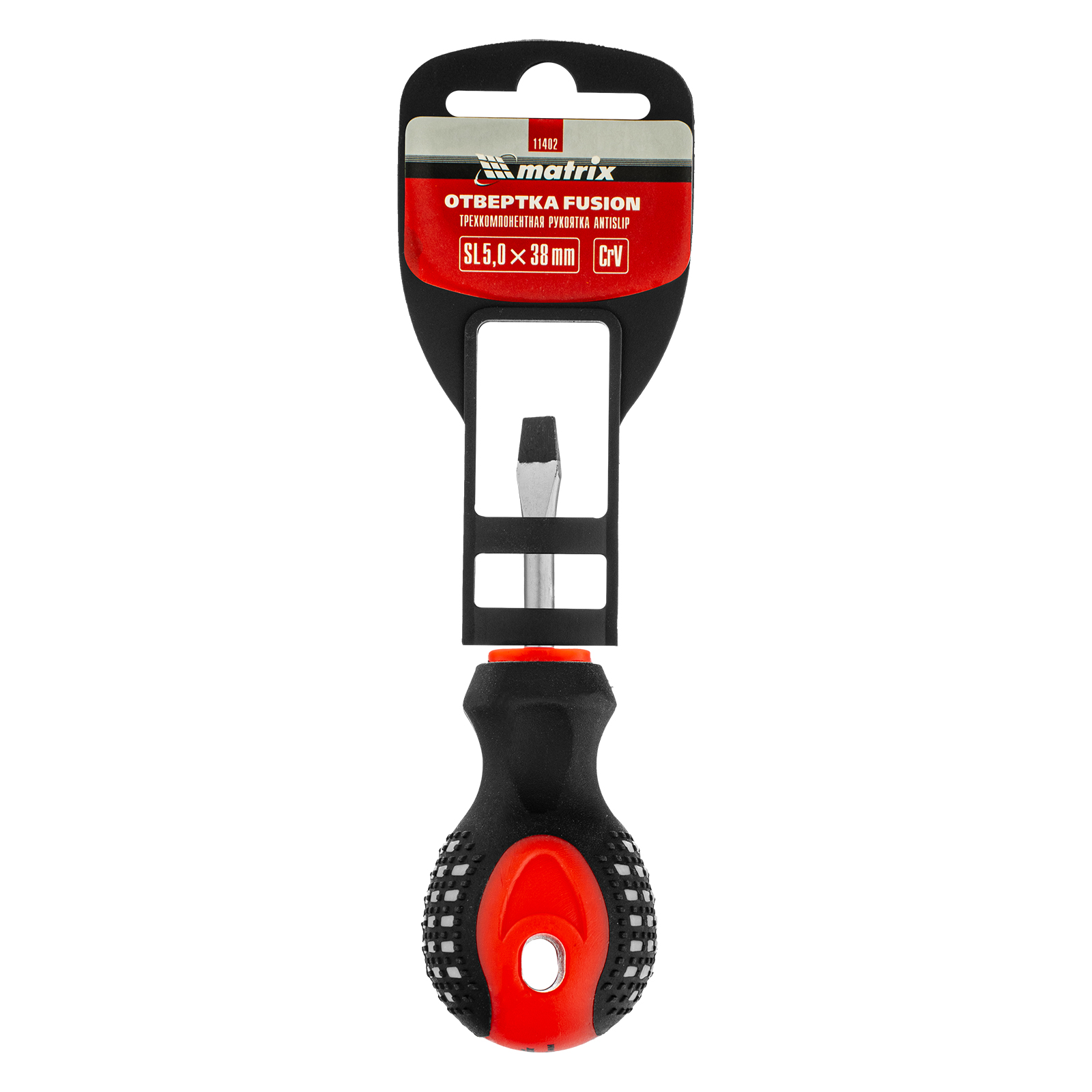 Отвертка Fusion, SL5 х 38 мм, CrV, трехкомпонентная рукоятка "Anti slip" Matrix в Уфе