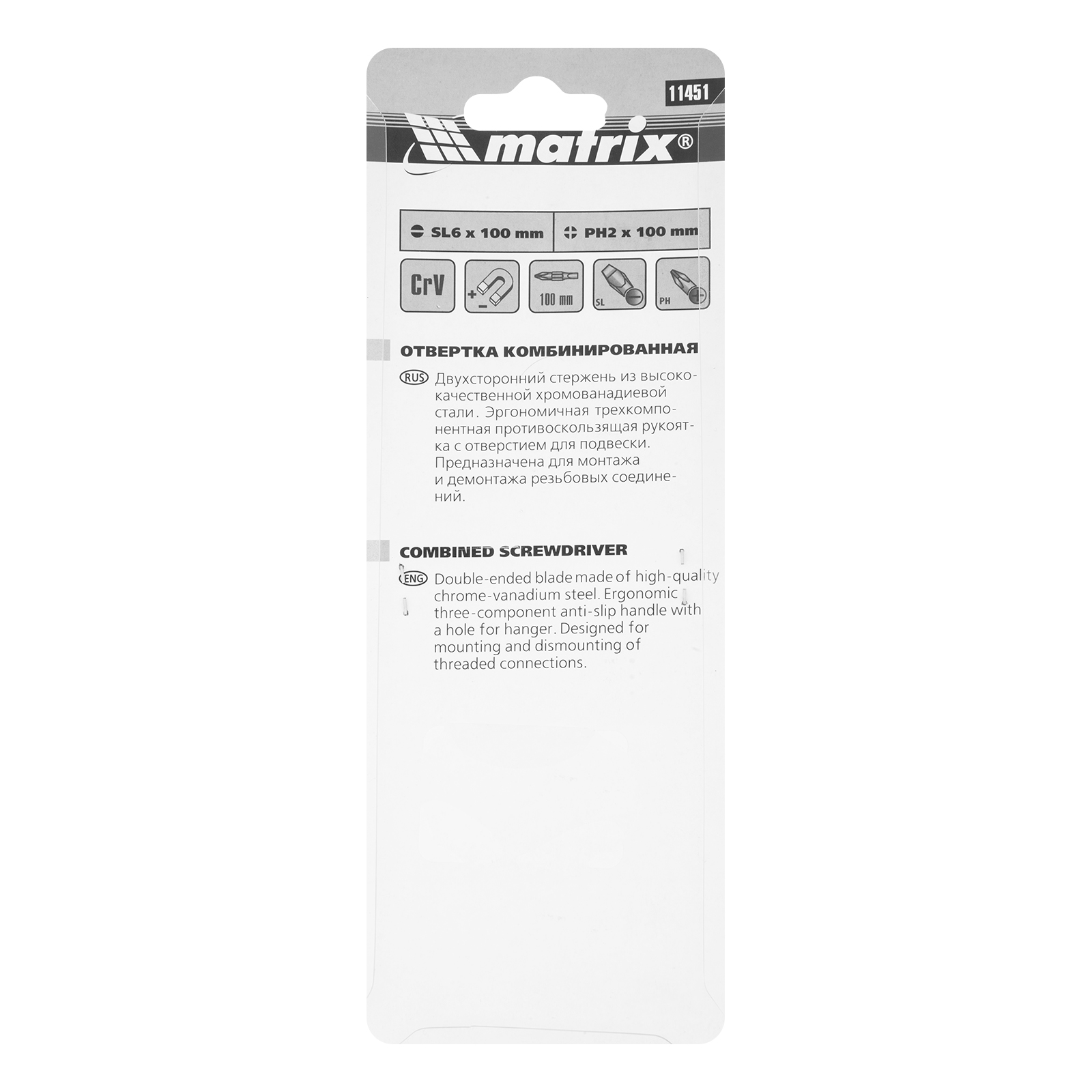 Отвертка комбинированная Fusion SL6/PH2 мм, CrV, трехкомпонентная рукоятка "Anti slip" Matrix в Уфе