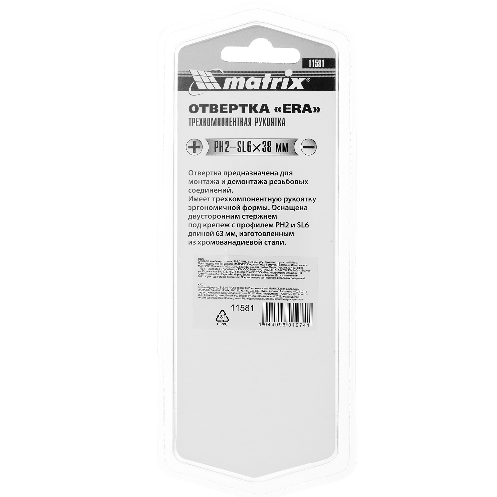 Отвертка комбинированная, SL6/PH2 х 38 мм, CrV, двухкомпонентная рукоятка Matrix в Уфе