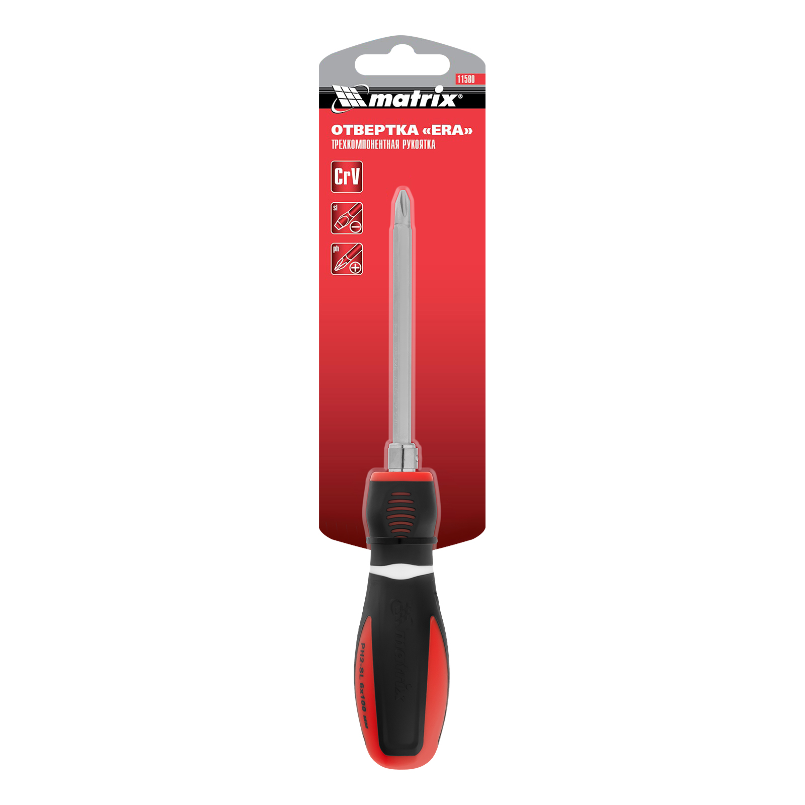 Отвертка комбинированная, SL6/PH2, CrV, двухкомпонентная рукоятка Matrix в Уфе