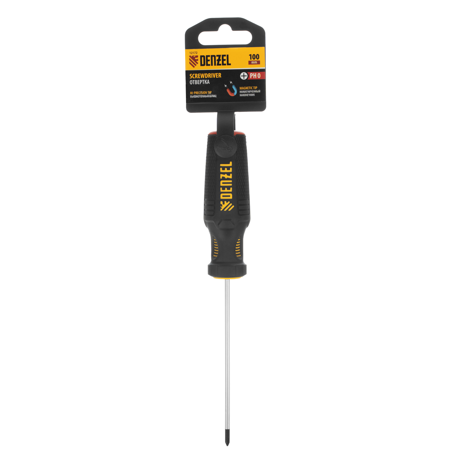 Отвертка PH0х100 мм, CrV, трехкомпонентная рукоятка Denzel в Уфе