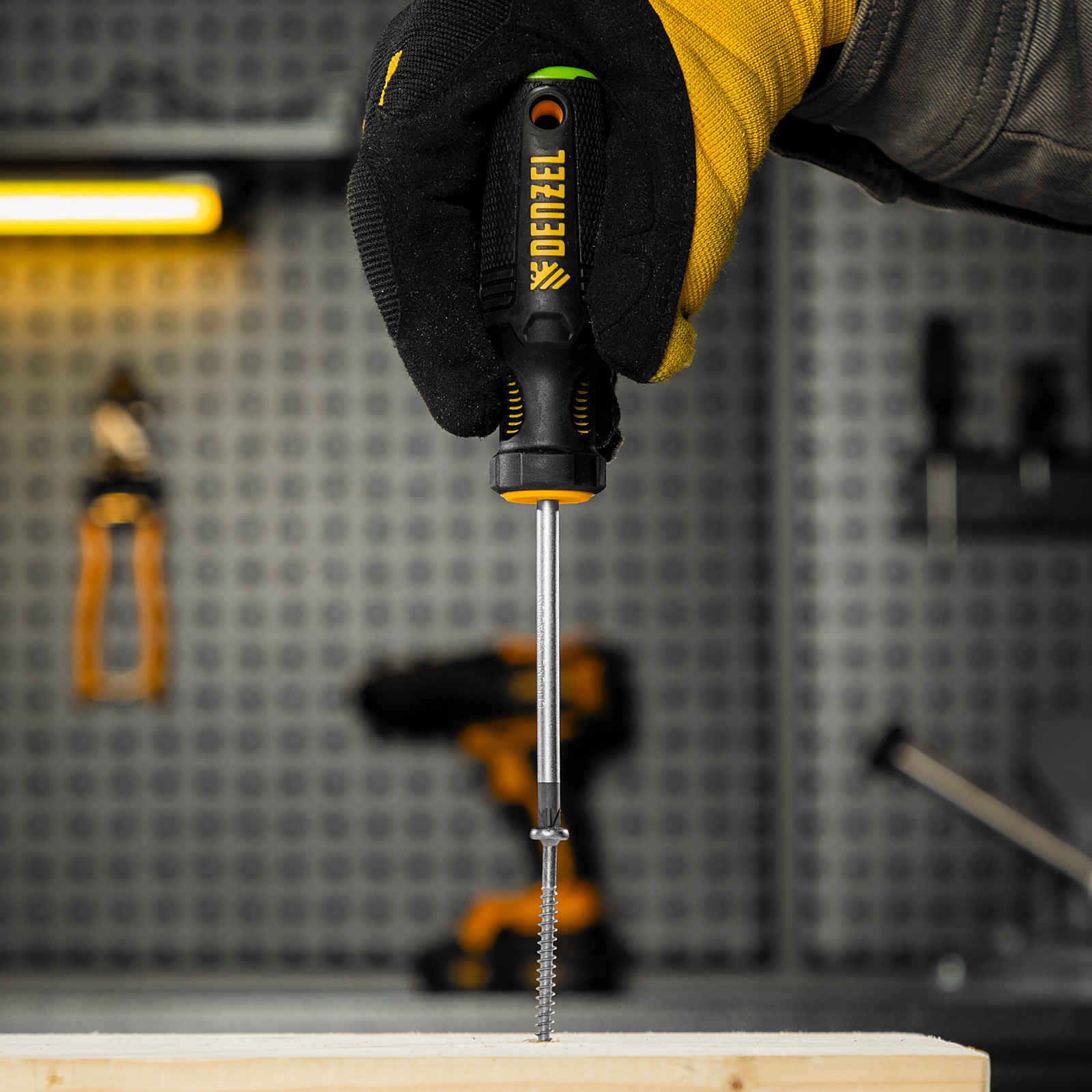 - Удобное хранение — отверстие в рукоятке позволяет подвешивать отвертку на крючок или скобу.