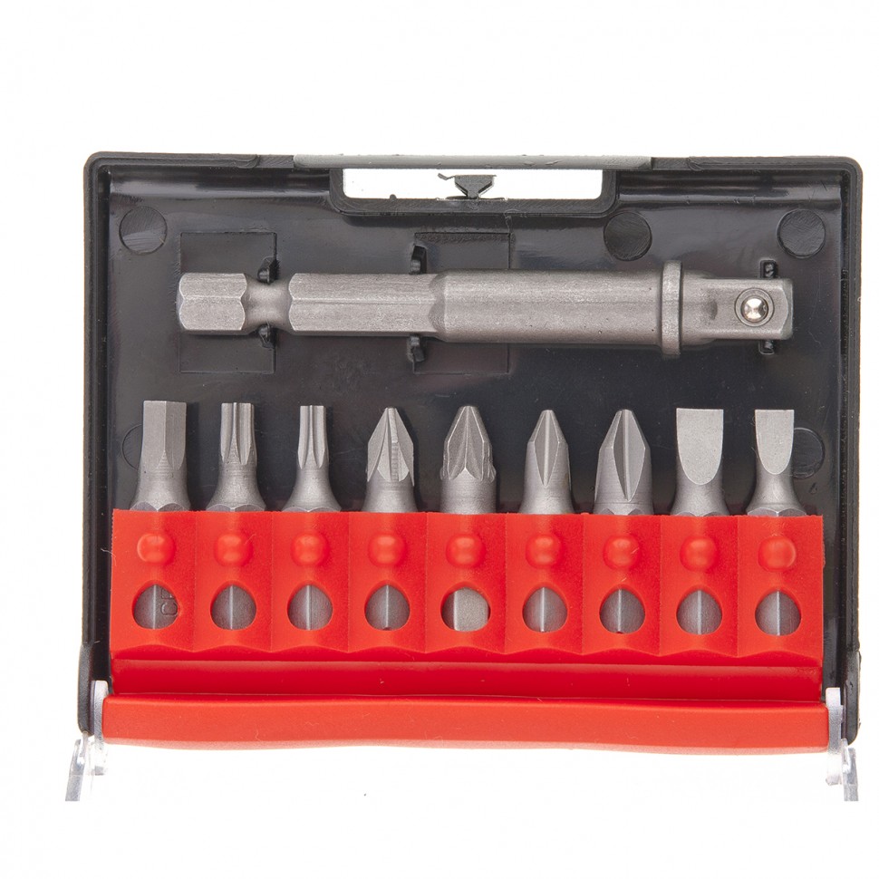 Отвертка Т-образная - 1 штБиты 25 мм: РН1, РН2, PZ1, PZ2, SL4, SL5, H4.5, T15, T20 - 9 штТорцевые головки: 4, 6, 7, 8, 9, 10, 11, 12 мм - 8 штАдаптер для торцевых головок 65 мм - 1 штПластиковый кейс для бит - 1 шт |