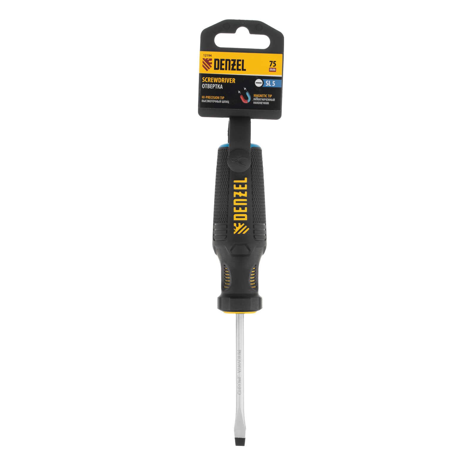 Отвертка SL5x75 мм, CrV, трехкомпонентная рукоятка Denzel в Уфе