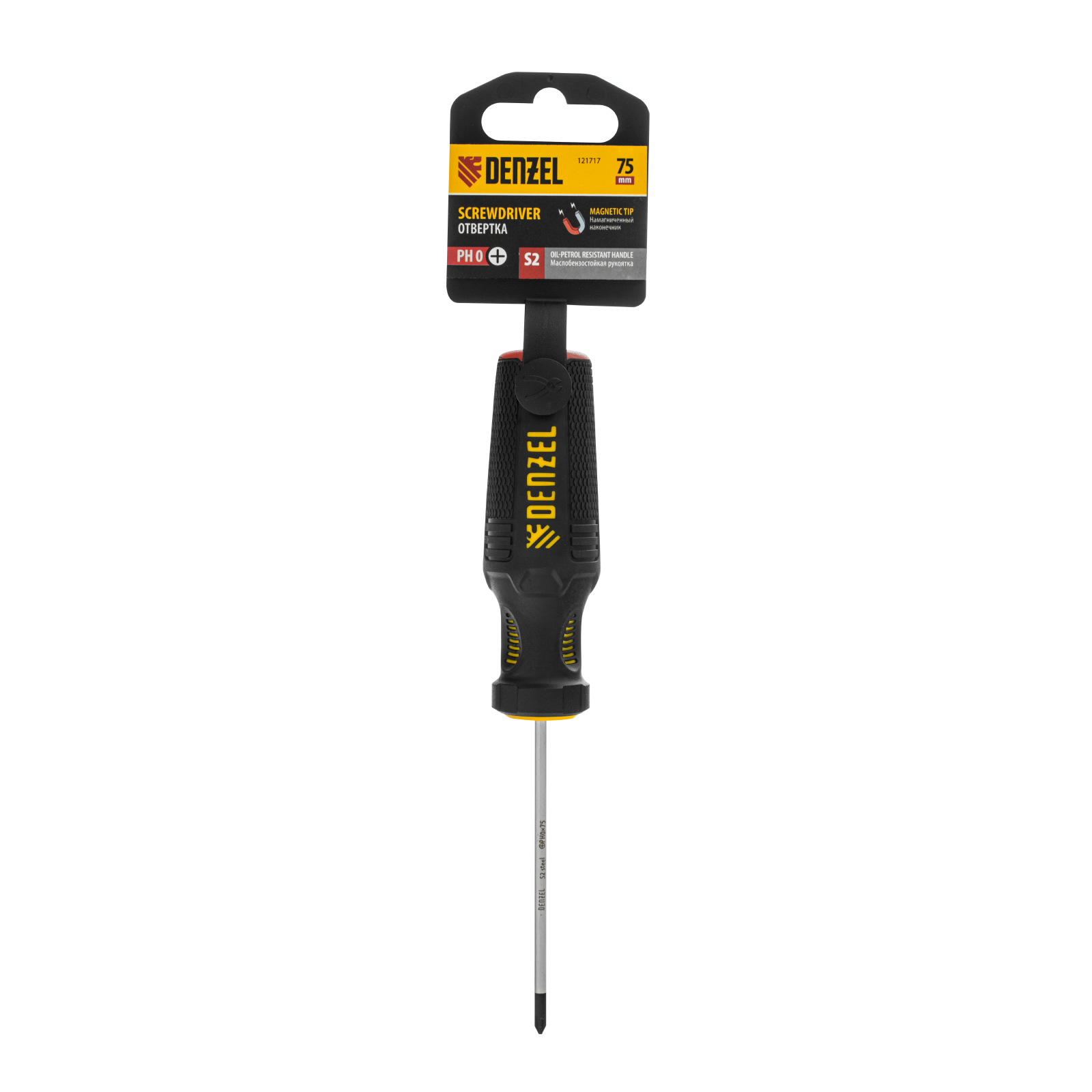 Отвертка, PH0х75 мм, S2, 3к рукоятка Denzel в Уфе