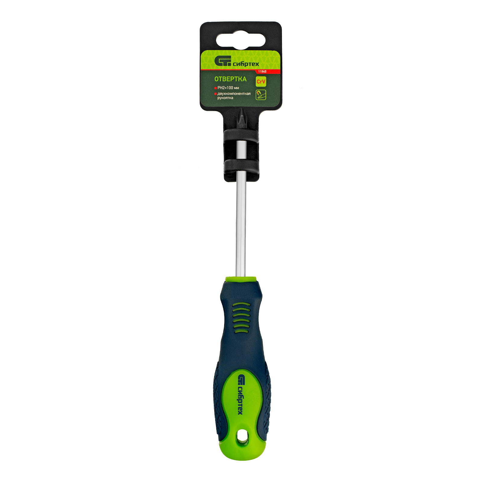 Отвертка Сибртех 11845 типоразмера PH2 х 100 мм, из стали CrV, с двухкомпонентной рукояткой и крестовым шлицем, позволяет проводить монтаж/демонтаж крепежных элементов типа Phillips. Подходит для работы в углублениях. Полупрофессиональная отвертка поможет отремонтировать бытовую технику, повесить полки, собрать мебель и выполнить другие работы.