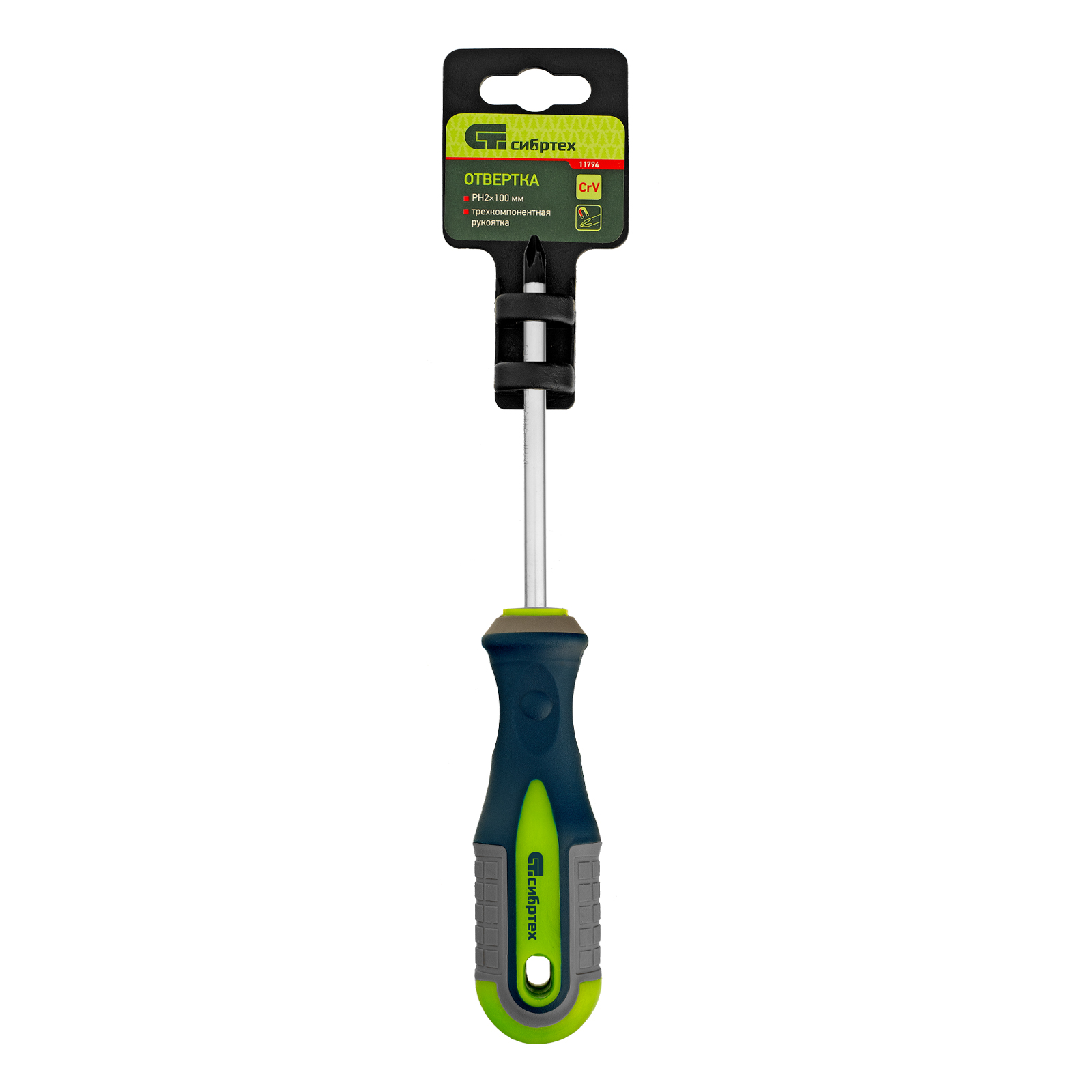 Отвертка, PH2 х 100 мм, CrV, трехкомпонентная рукоятка Сибртех в Уфе