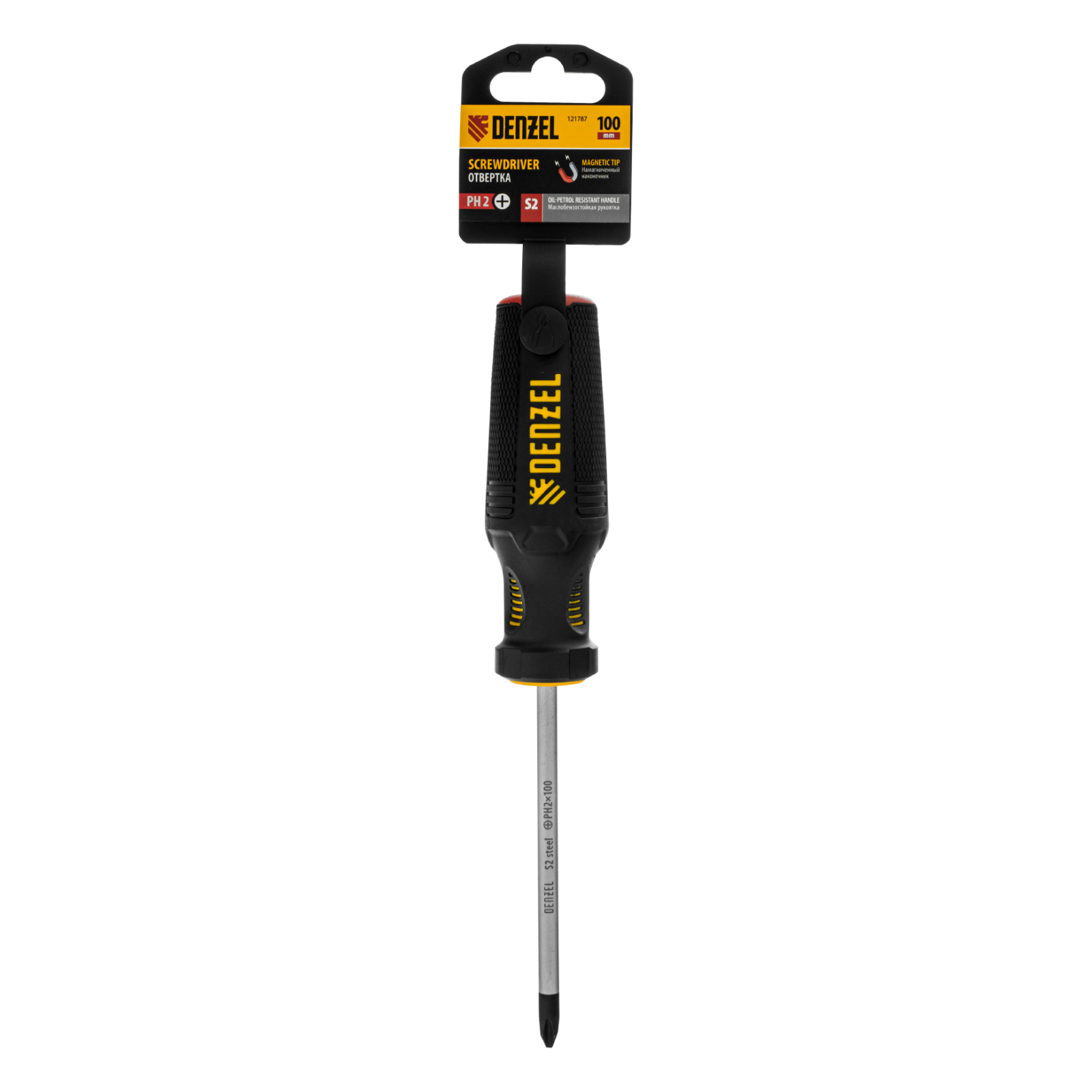Отвертка Denzel 121787 с трехкомпонентной рукояткой, со стержнем из стали S2, длиной 100 мм, предназначена для закручивания и откручивания резьбового крепежа типа PH2. Высокоточный намагниченный шлиц избавляет мастера от необходимости придерживать винт или саморез рукой. Отвертка рекомендована для профессионального использования.