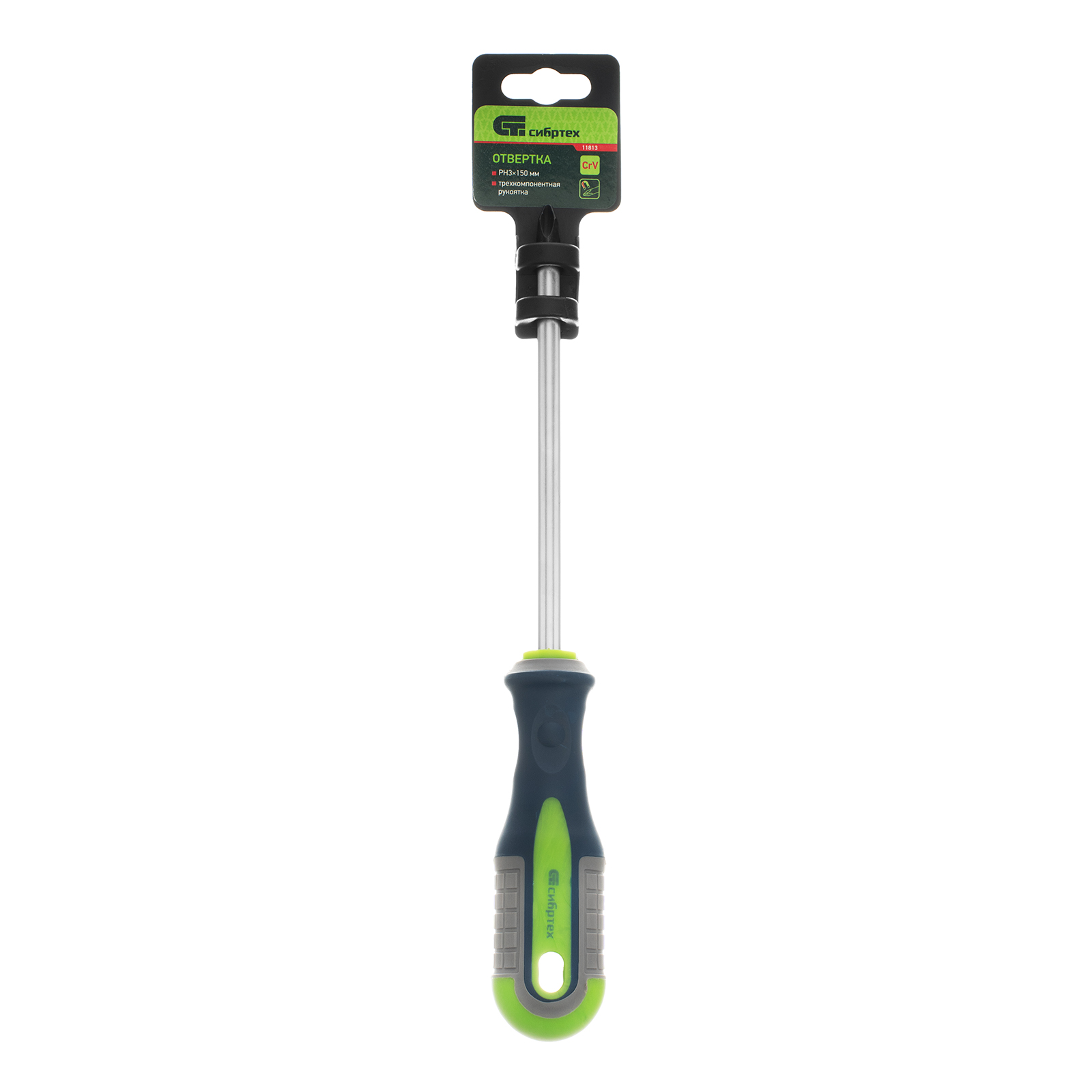 Отвертка Сибртех 11813, PH3 х 150 мм, из стали CrV, с 3-х компонентной рукояткой, пригодится частным мастерам для монтажа/демонтажа крепежных элементов типоразмера PH3. Она поможет произвести ремонтные и монтажные работы дома, в гараже, на даче. Благодаря стержню длиной 150 мм отверткой можно работать в углублениях.
