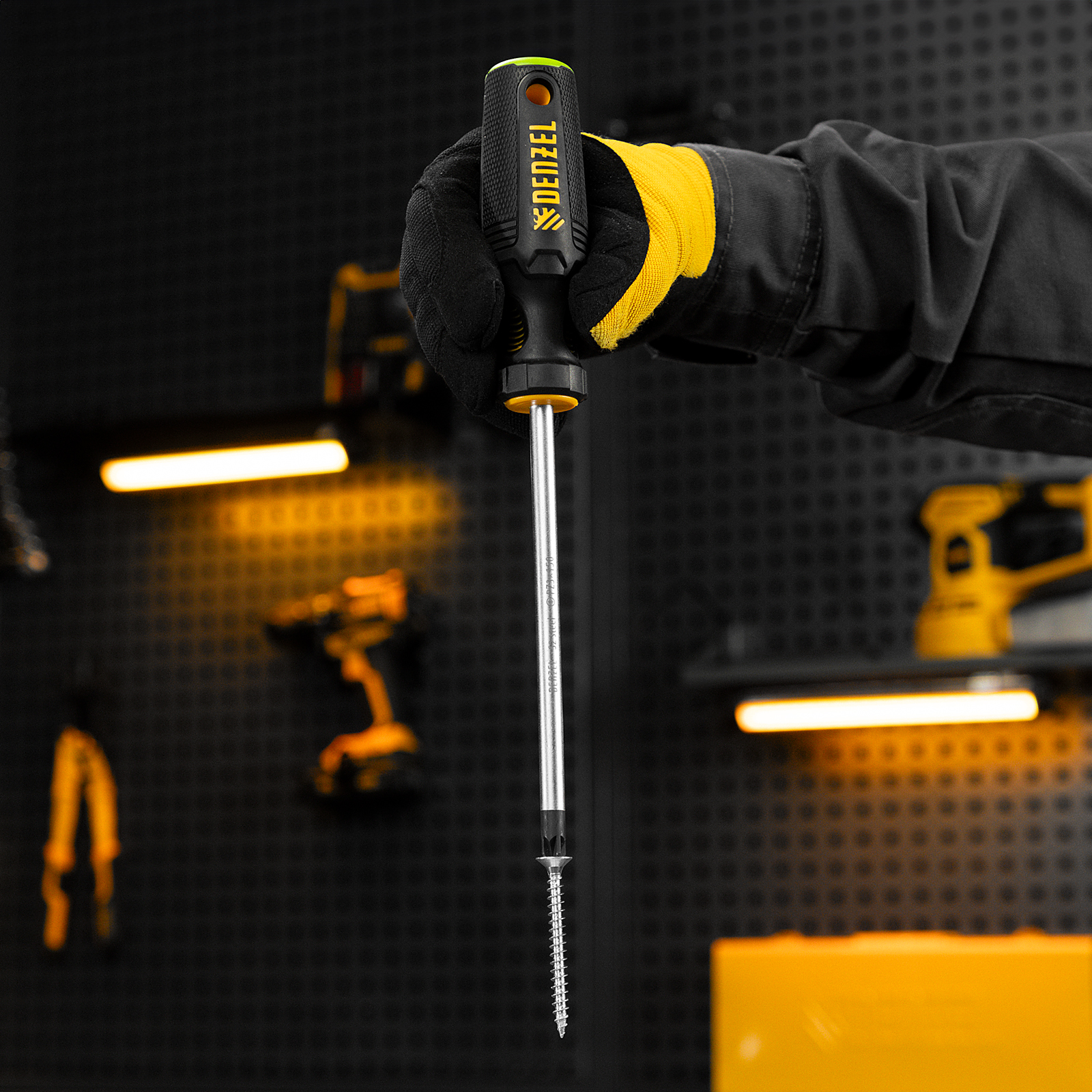 - Удобное хранение — отверстие в рукоятке позволяет подвешивать отвертку на крючок или скобу.