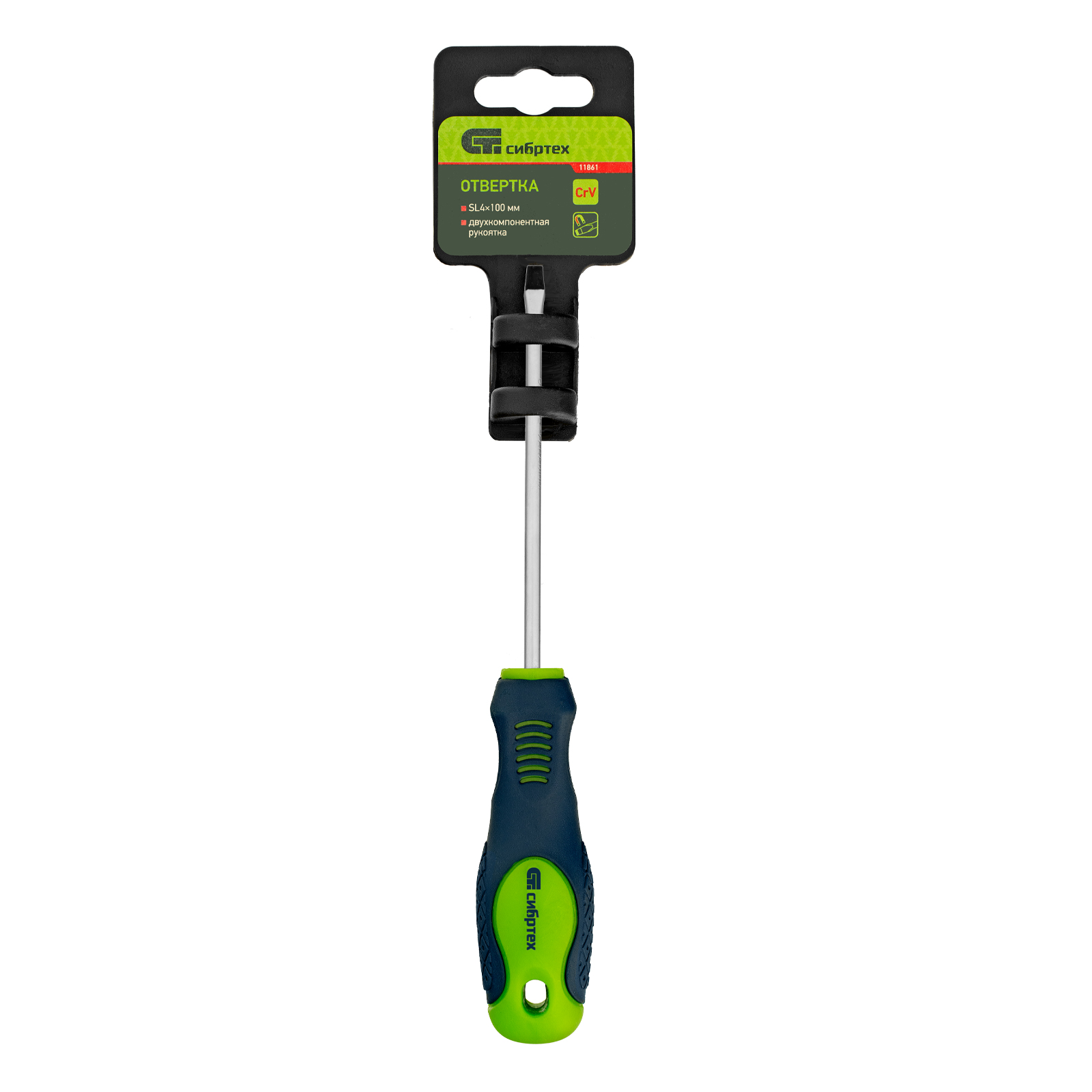 Отвертка, SL4 х 100 мм, CrV, двухкомпонентная рукоятка Сибртех в Уфе