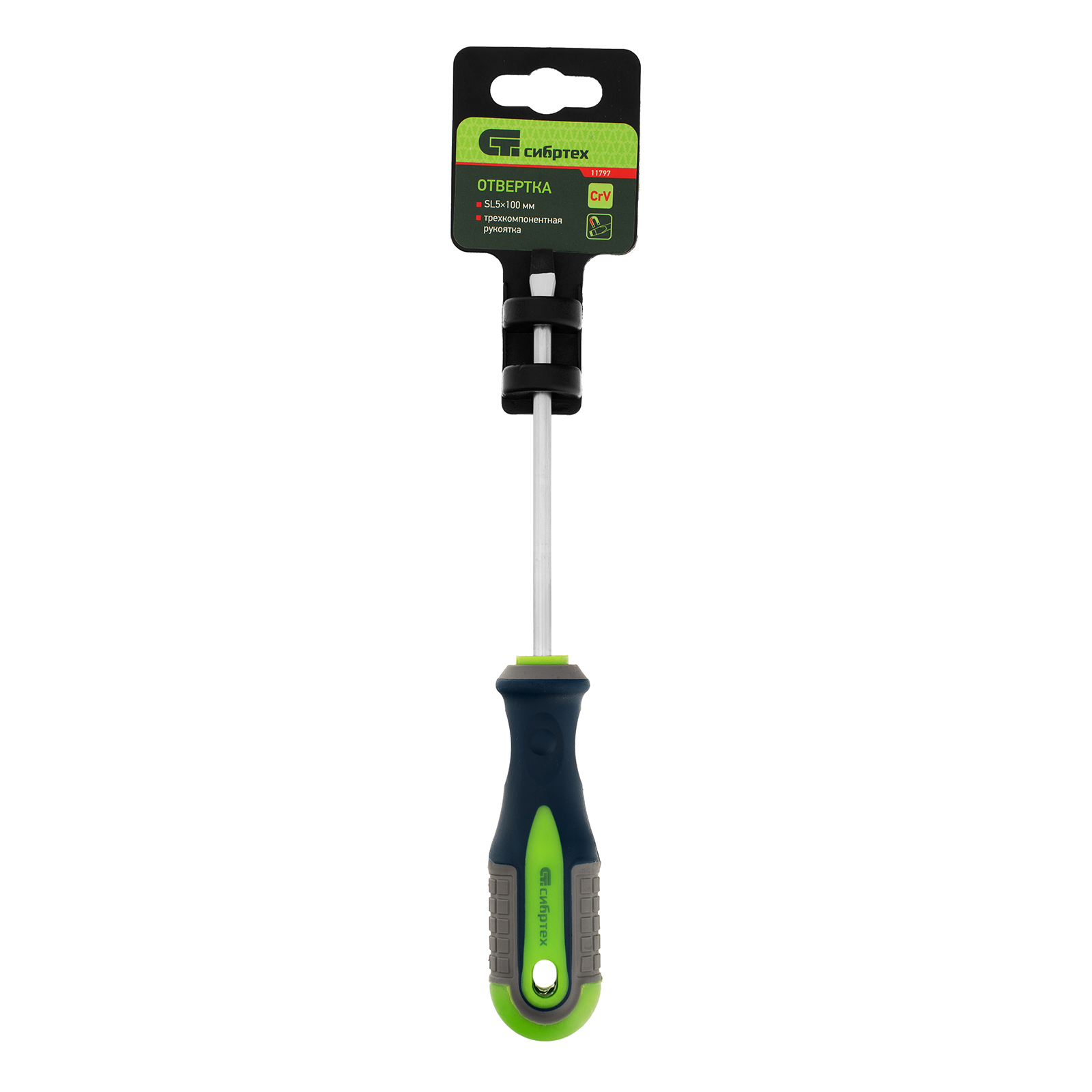 Отвертка, SL5 х 100 мм, CrV, трехкомпонентная рукоятка Сибртех в Уфе