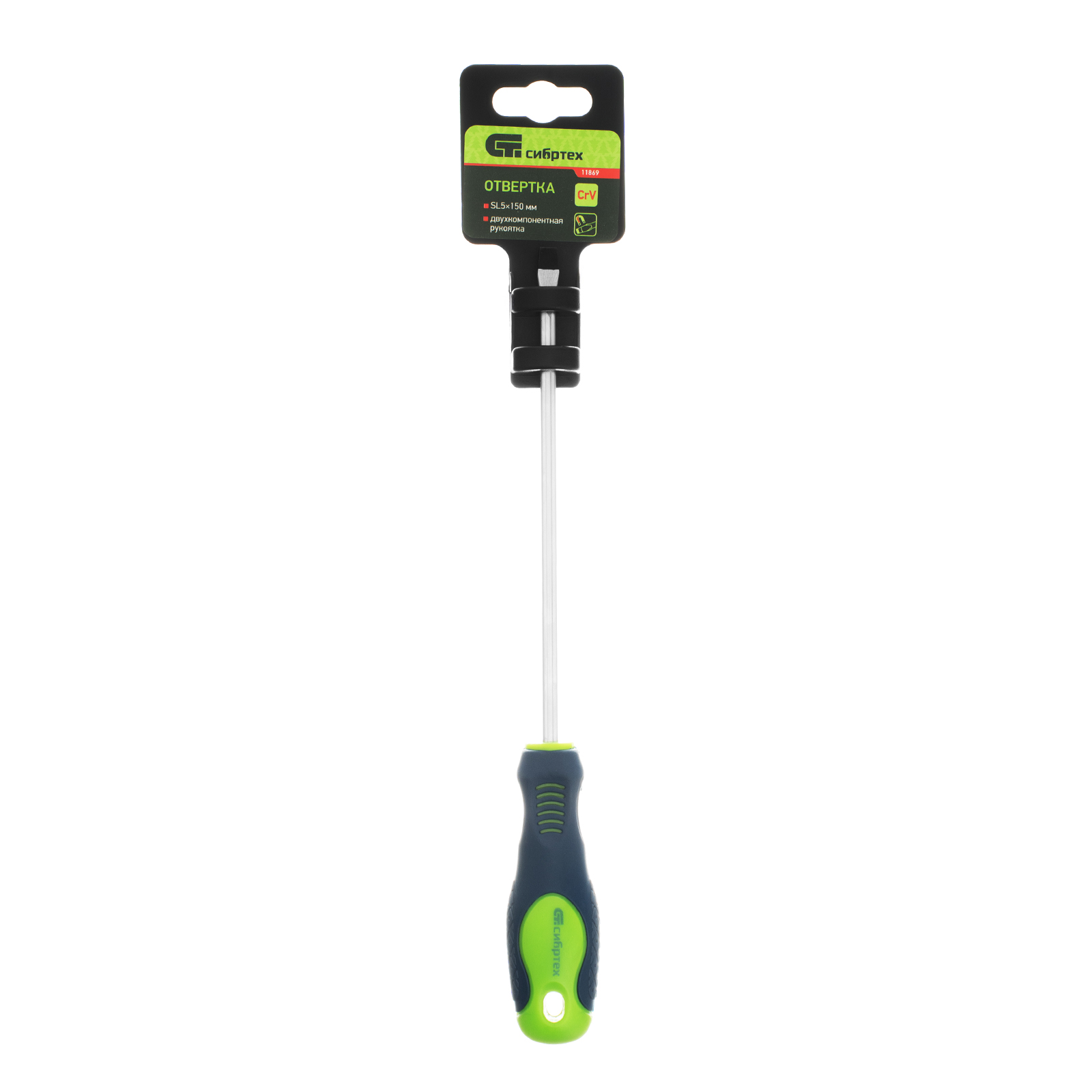 Отвертка, SL5 х 150 мм, CrV, двухкомпонентная рукоятка Сибртех в Уфе