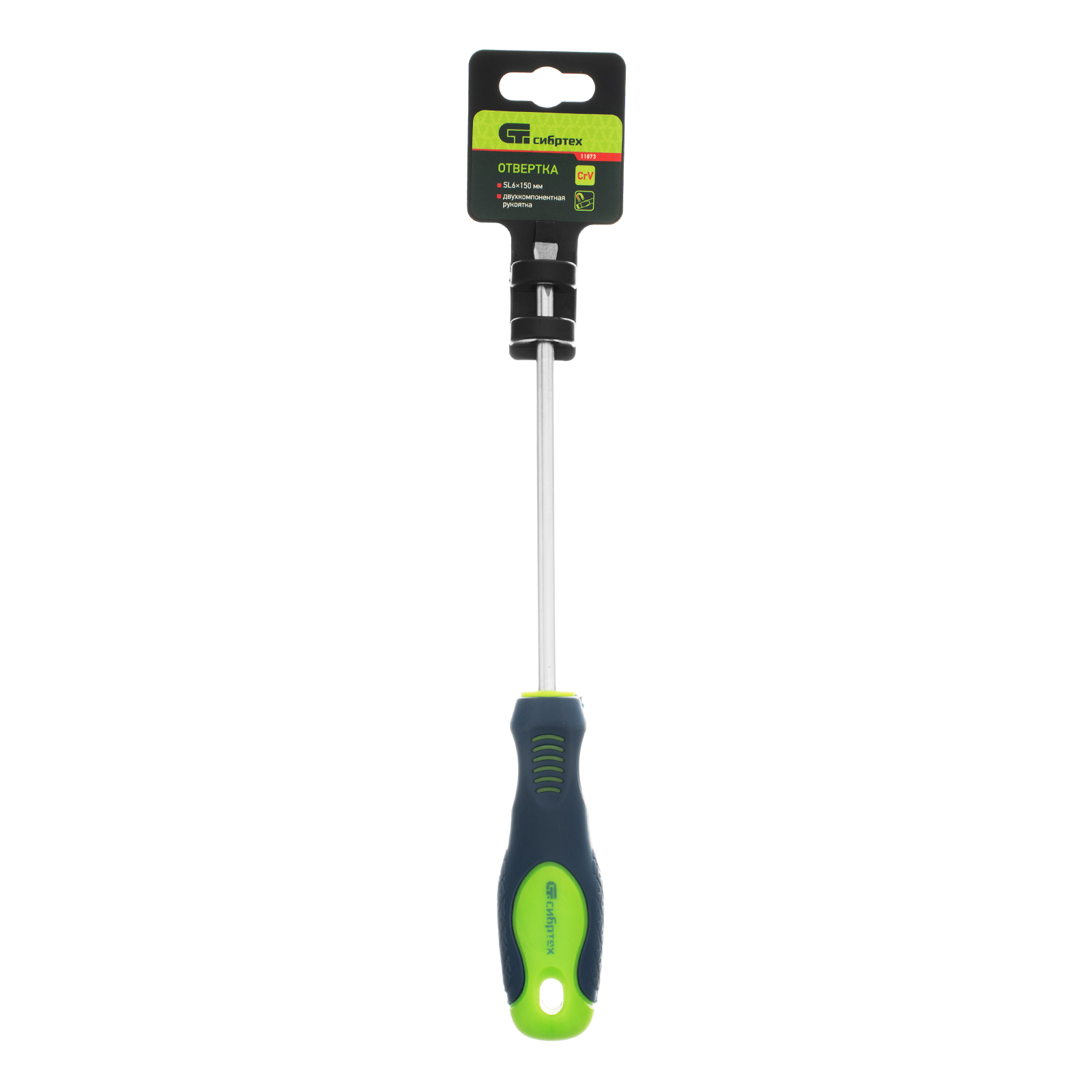 Отвертка, SL6 х 150 мм, CrV, двухкомпонентная рукоятка Сибртех в Уфе