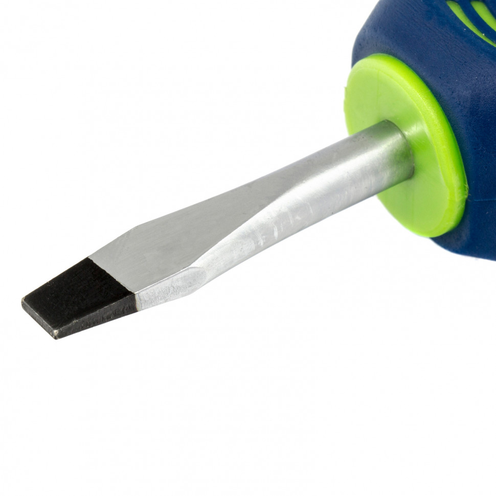Отвертка Сибртех 11853, SL6 х 38 мм, из стали CrV, с 2-х компонентной рукояткой, подходит для работ, не требующих большого усилия затяжки. С ее помощью осуществляется монтаж/демонтаж крепежных элементов типа Slotted. Отвертка оснащена коротким стержнем 38 мм, поэтому подходит для работ в ограниченном пространстве, что актуально в автомастерских. Также она пригодится при проведении бытового ремонта.