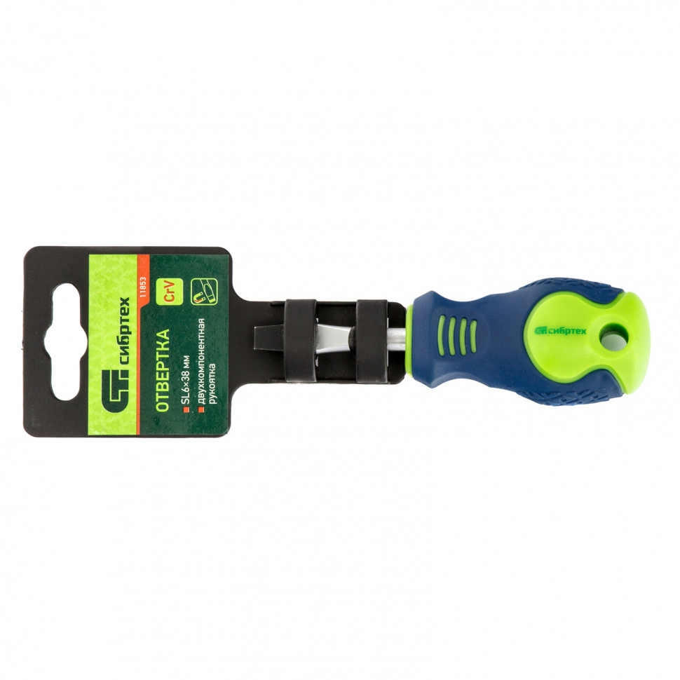 Отвертка, SL6 х 38 мм, CrV, двухкомпонентная рукоятка Сибртех в Уфе