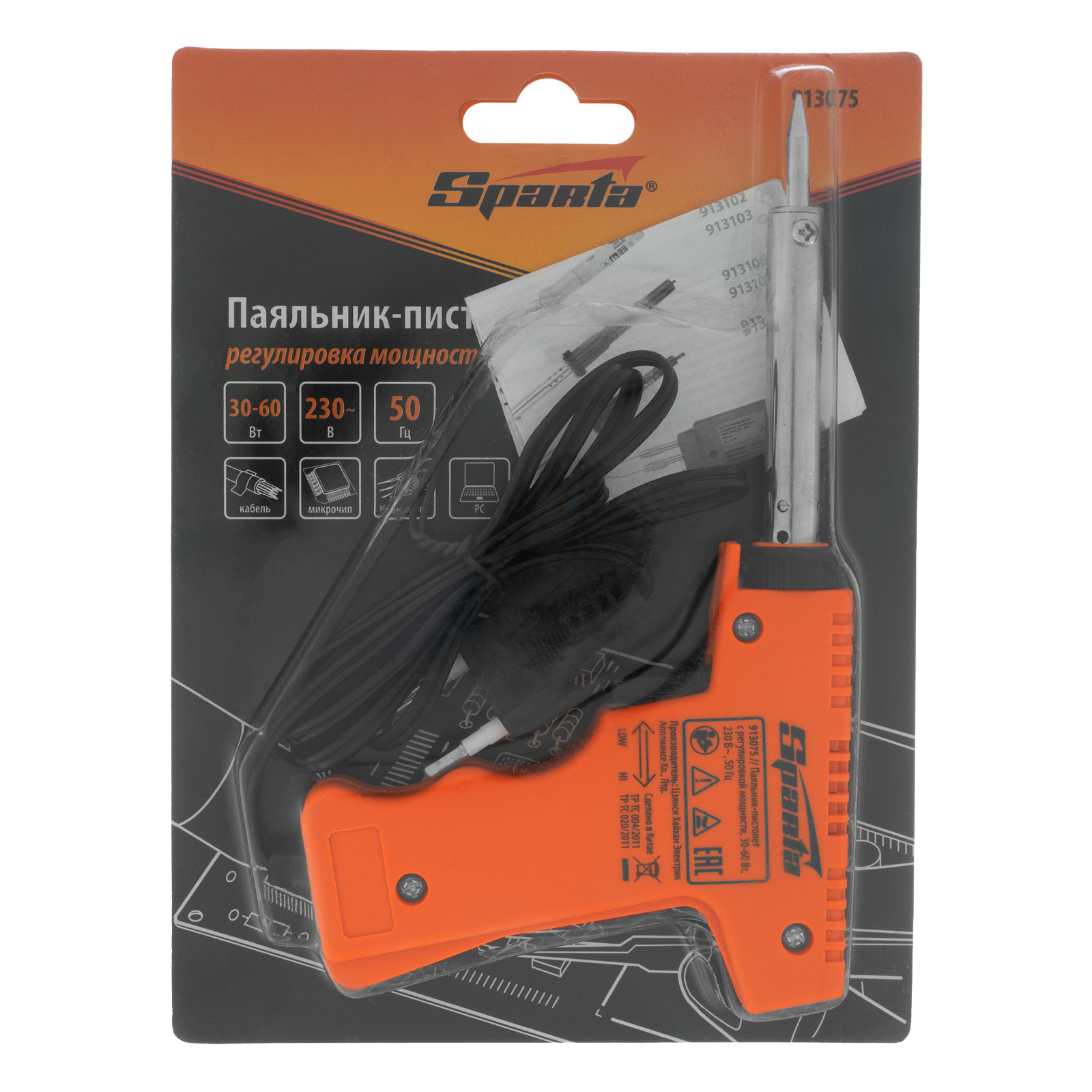 Паяльник-пистолет с регулировкой мощности 30-60 Вт, 220 В Sparta в Уфе