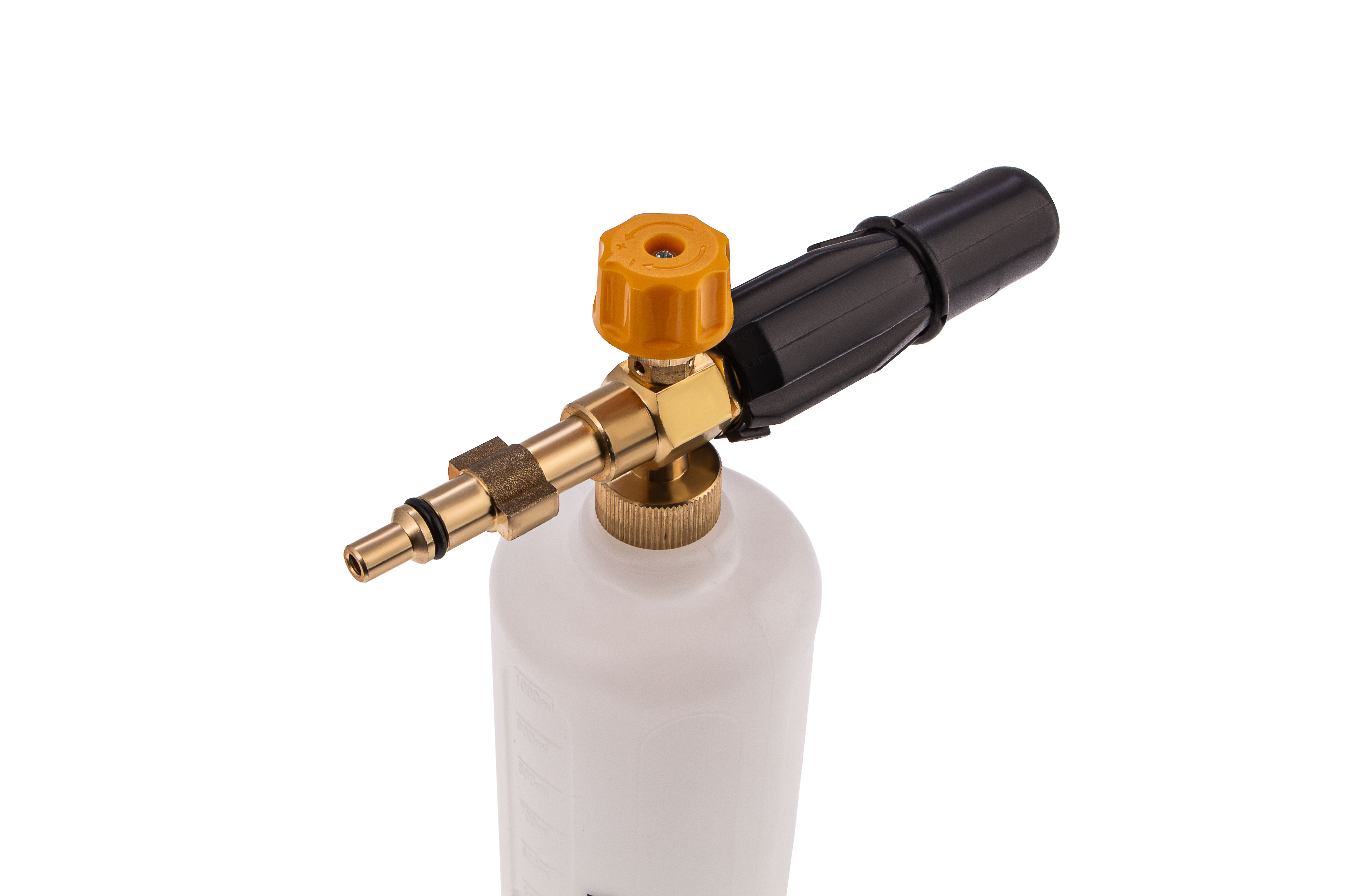 - Надежность и долговечность — латунные фитинг и адаптер устойчивы к коррозии и механическим повреждениям, бутылка и пенная насадка из прочного пластика не подвержены воздействию химических растворов.