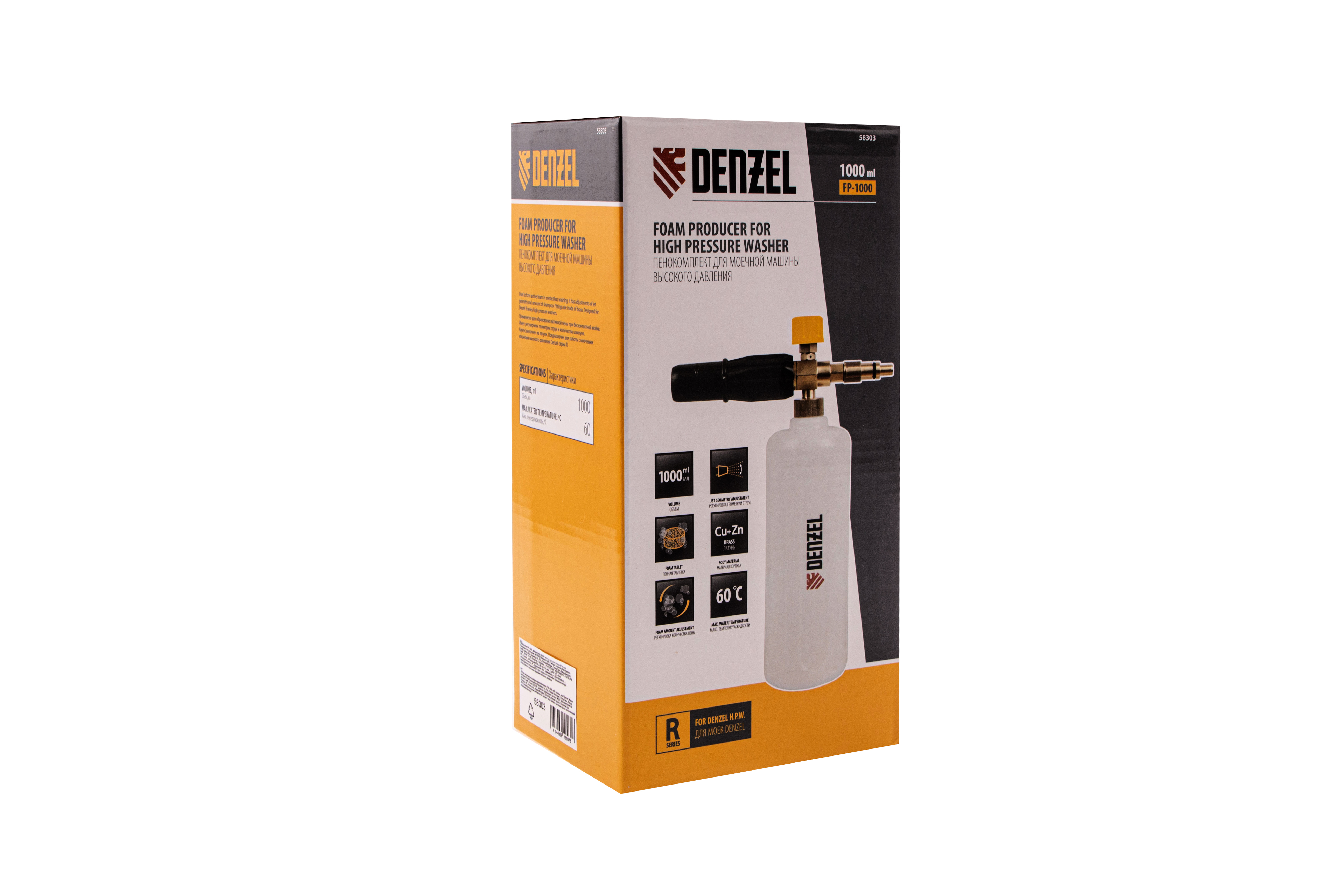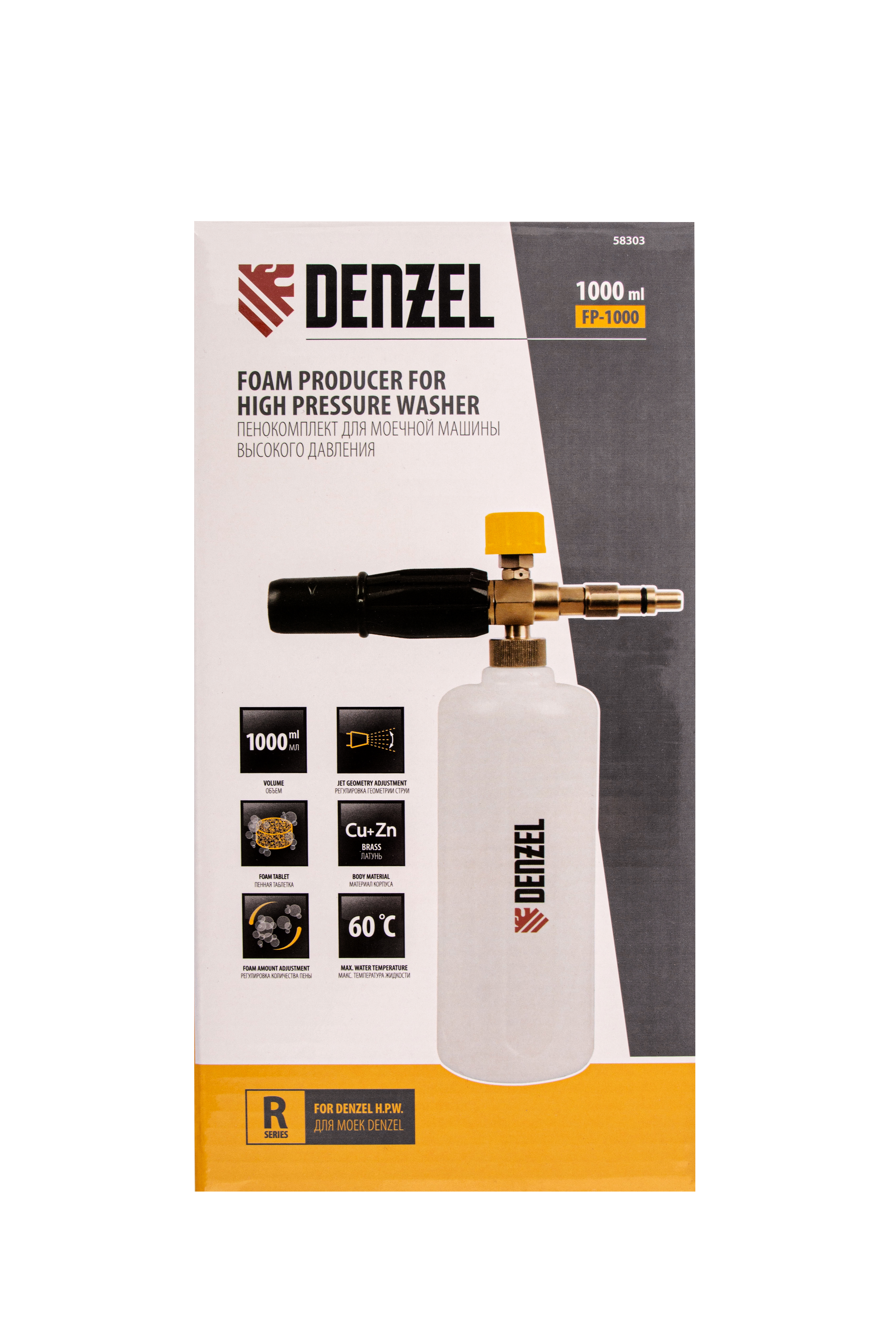 Пенокомплект Denzel FPB-1000 58303 позволяет получать пенный раствор для мойки кузовов автомобилей и других поверхностей. Он устанавливается на моечные машины высокого давления Denzel серии R.