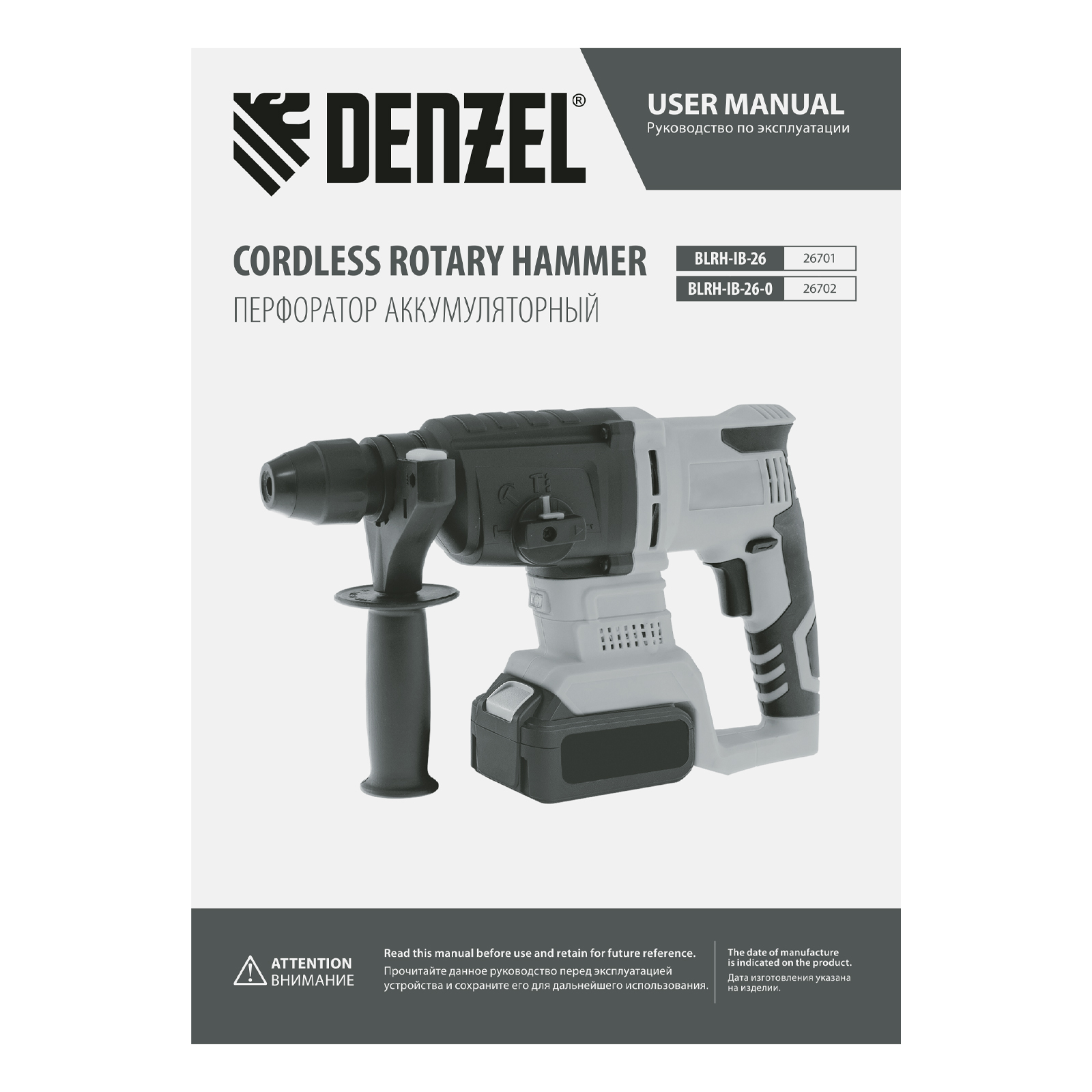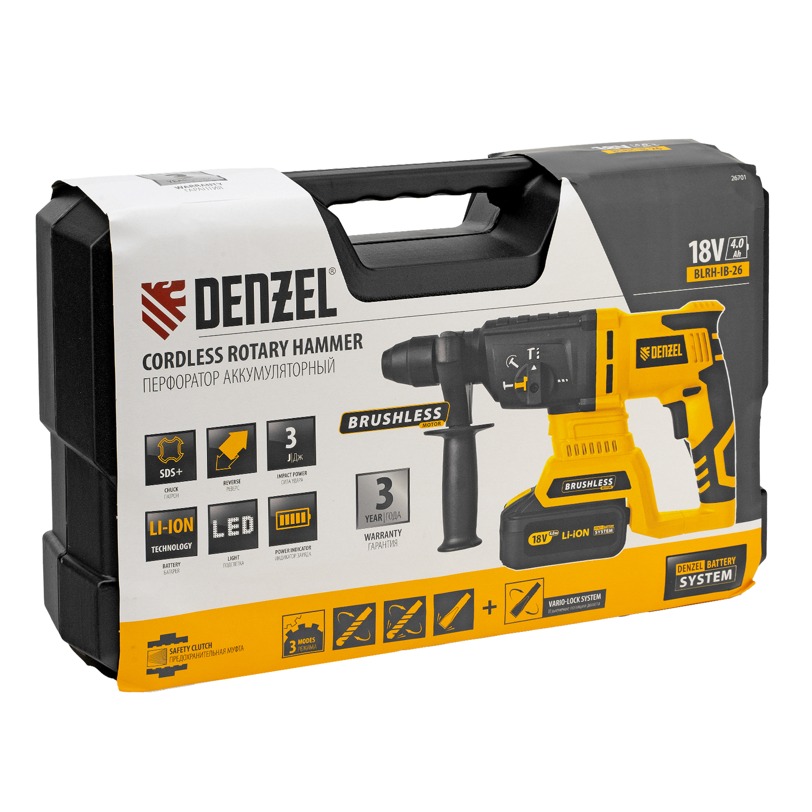 Перфоратор аккумуляторный BLRH-IB-26 Li-Ion, 18 В Denzel в Уфе