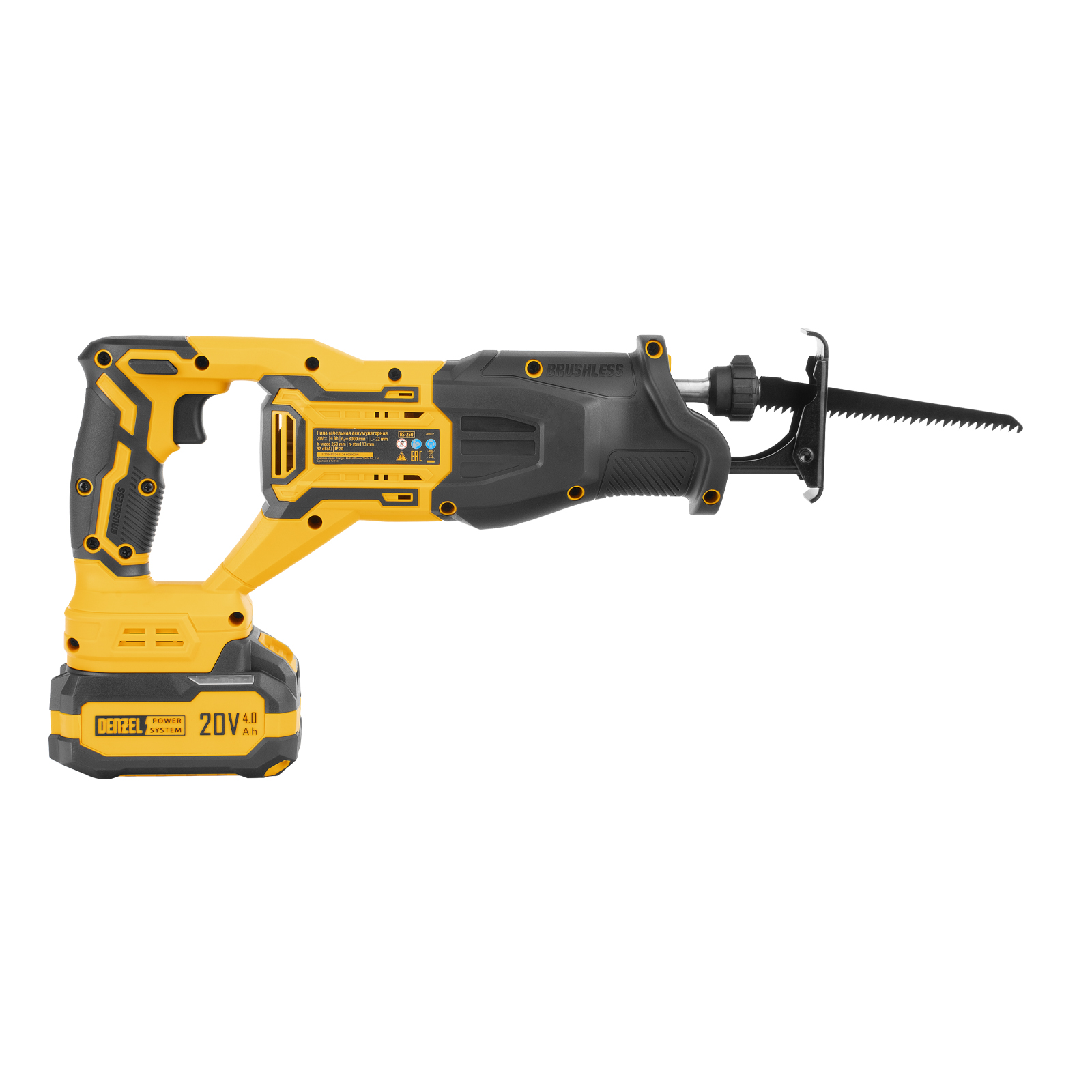 Пила сабельная аккумуляторная бесщет. RS-250, Li-Ion, 20 В Denzel в Уфе
