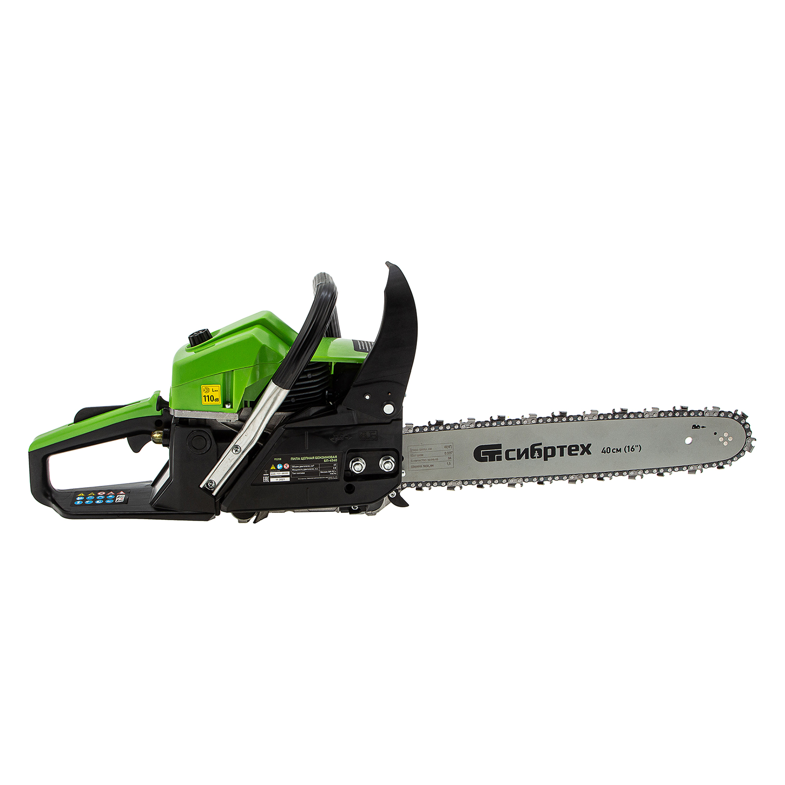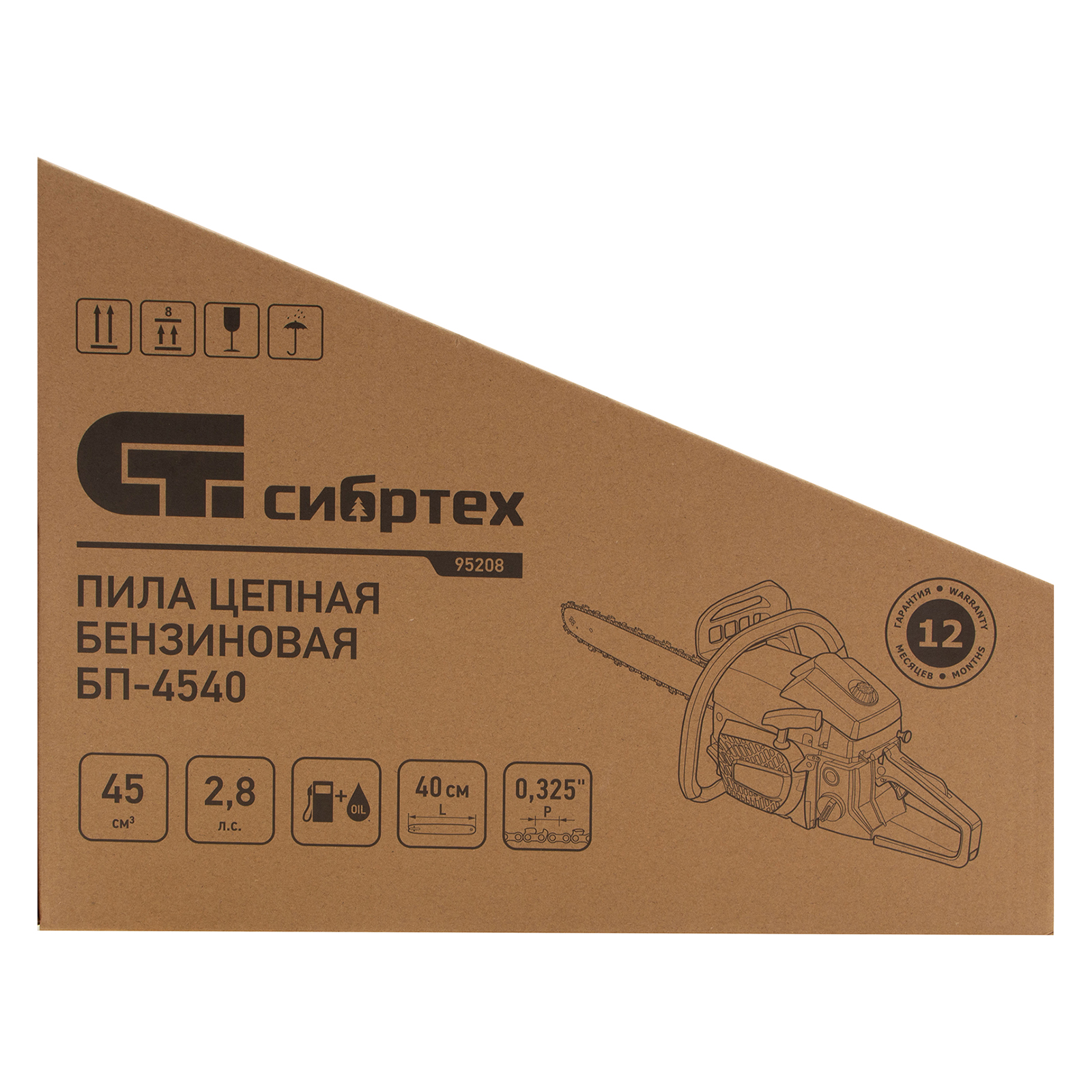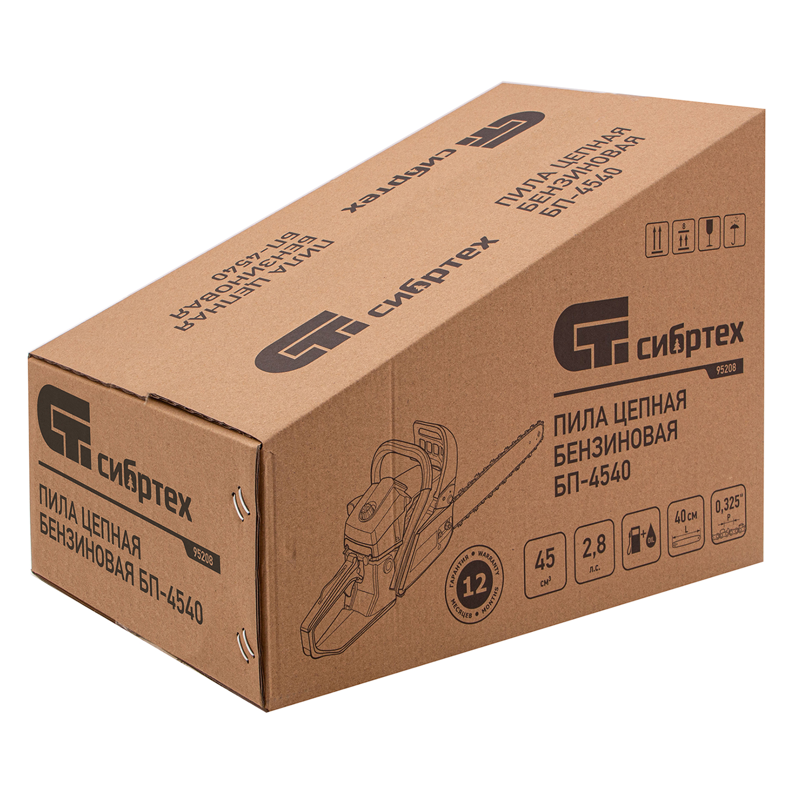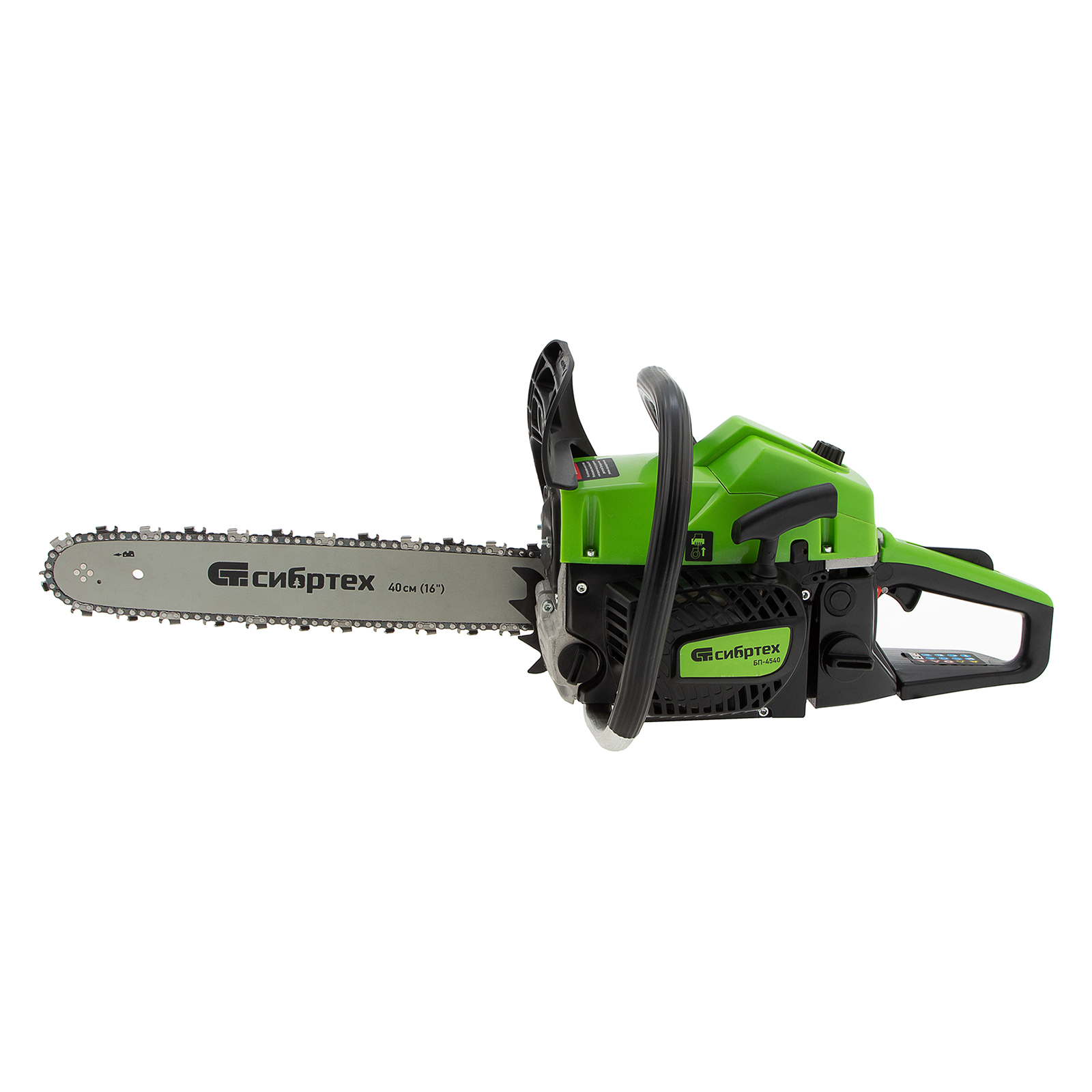 Пила цепная бензиновая Сибртех БП-4540 95208 с двухтактным двигателем объемом 45 см3 и мощностью 2,8 л.с предназначена для распиловки древесины различных пород, заготовки дров, спиливания веток и крупных сучков. Пригодится во время ремонта, строительства, благоустройства садового участка и при выполнении бытовых задач. Мощный и экономичный двигатель в сочетании с качественной шиной длиной 40 см (цепь с 64 звеньями с шагом 0,325 дюйма и шириной паза 1,5 мм) позволяют достичь наилучших результатов да.