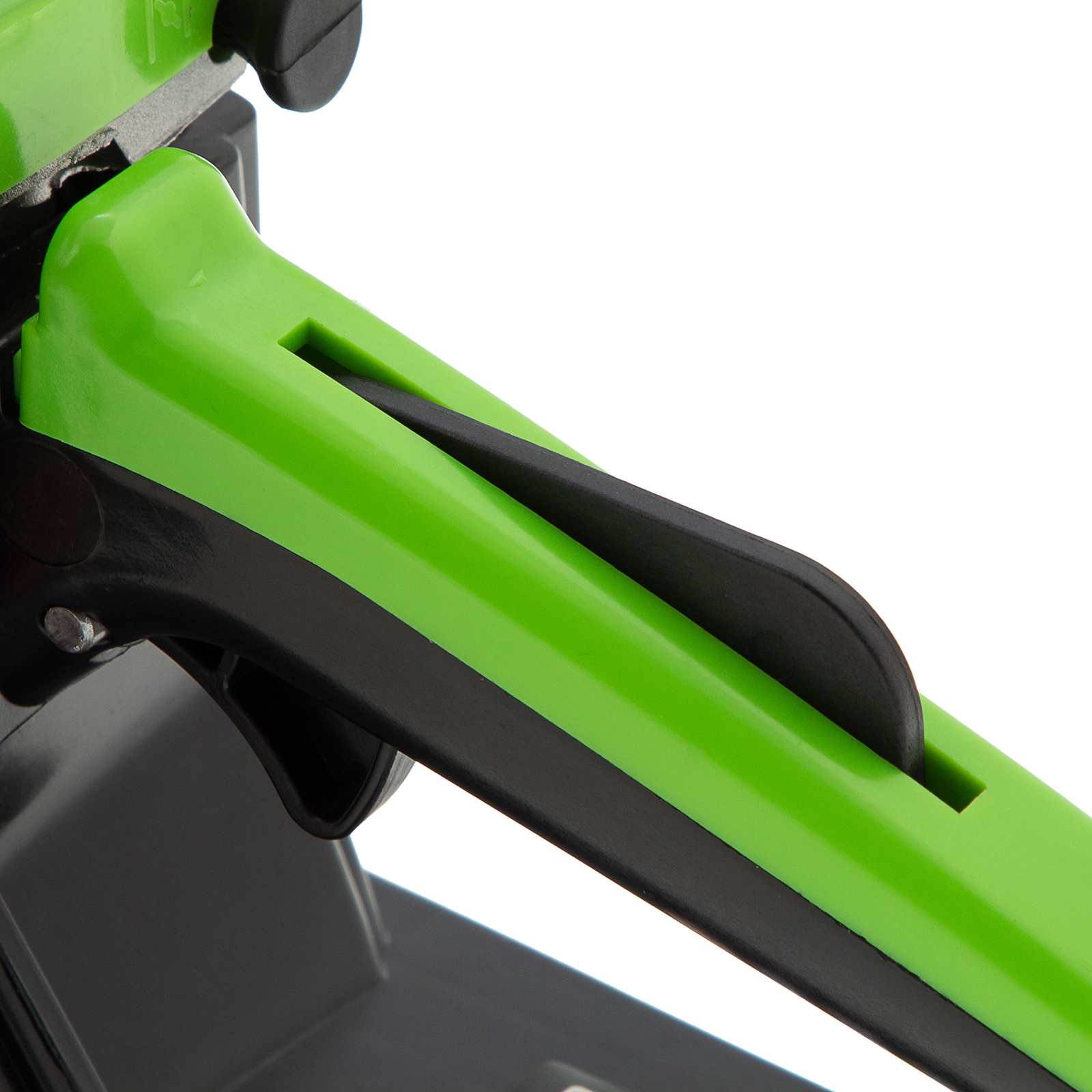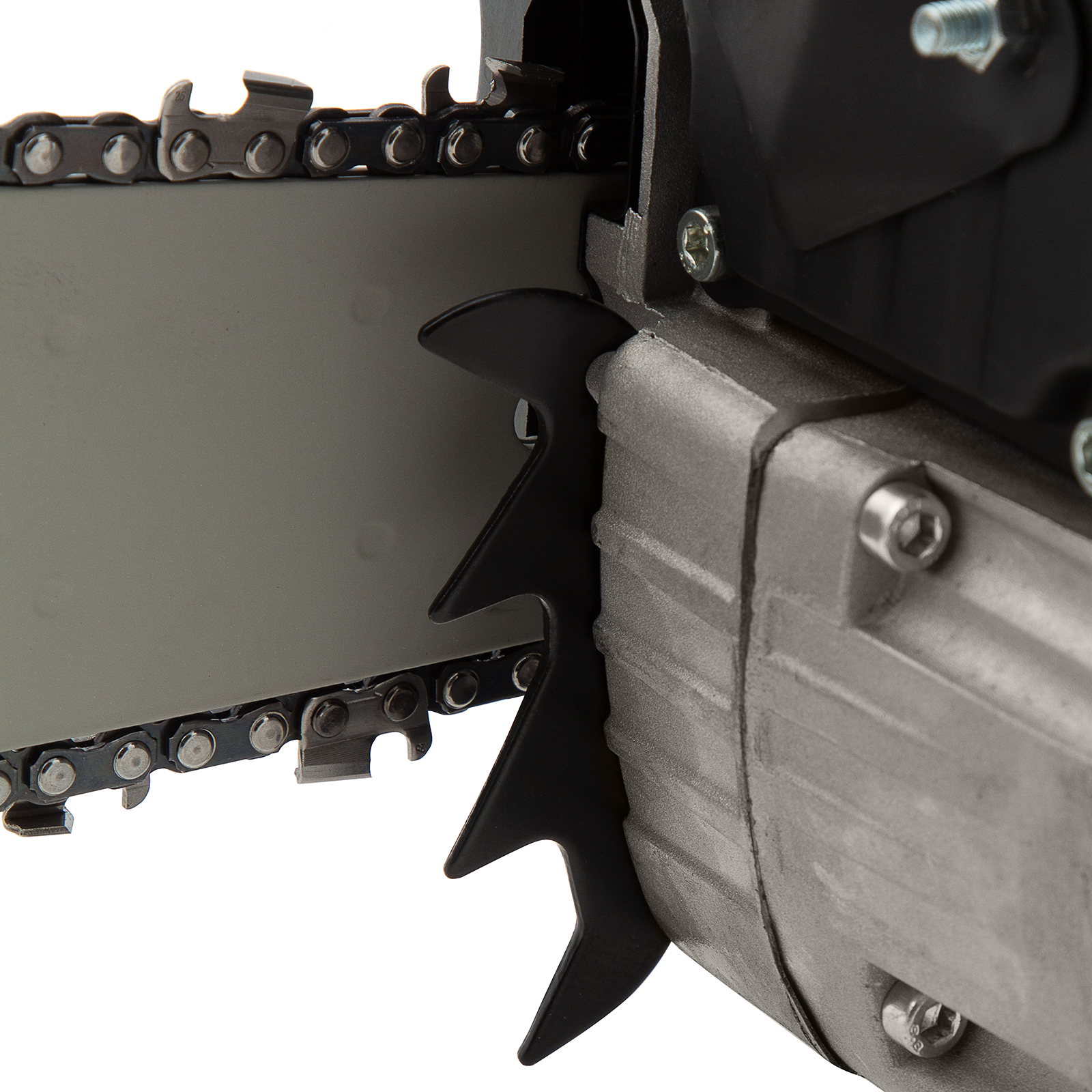 - Стальной зубчатый упор — пилу можно зафиксировать во время работы, это обеспечивает более точный распил и одновременно снижает отдачу.
