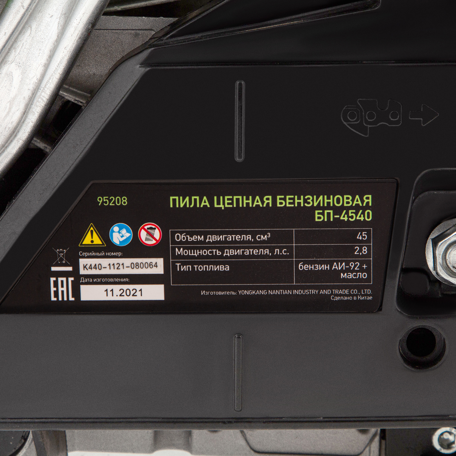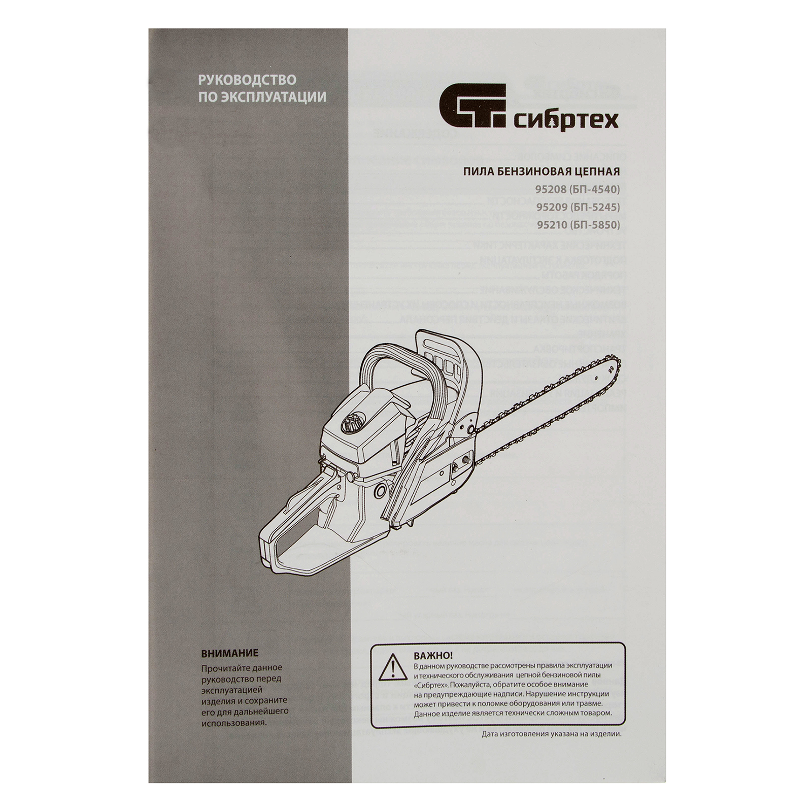 Пила цепная бензиновая - 1 штШина - 1 штЧехол шины - 1 штЦепь - 1 штЕмкость для приготовления смеси - 1 штКомплект инструментов - 1 штРуководство по эксплуатации и гарантийный талон - 1 шт |