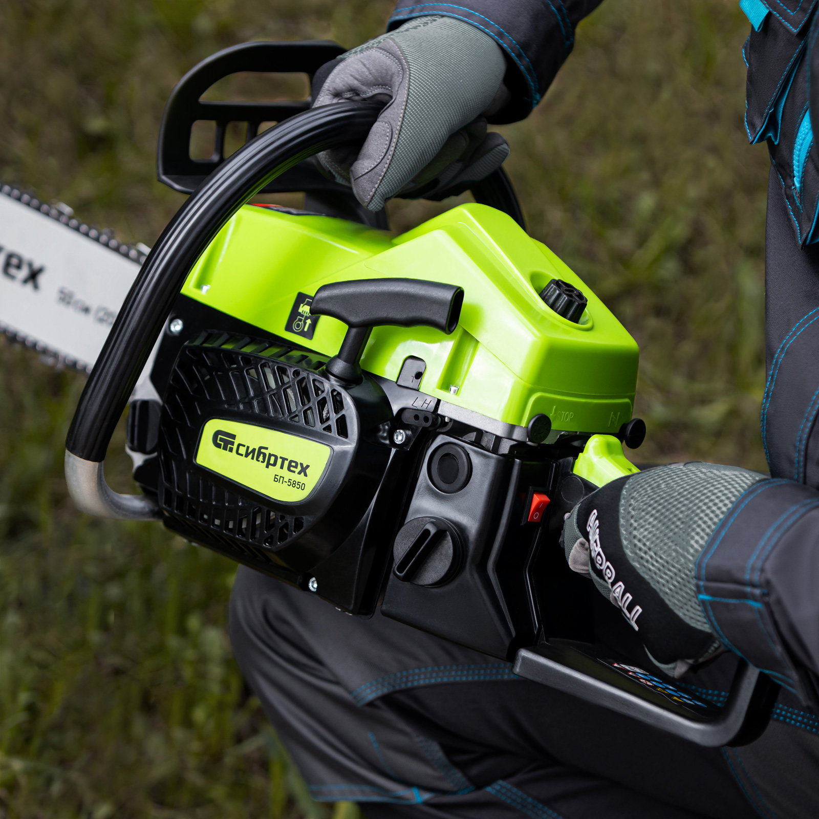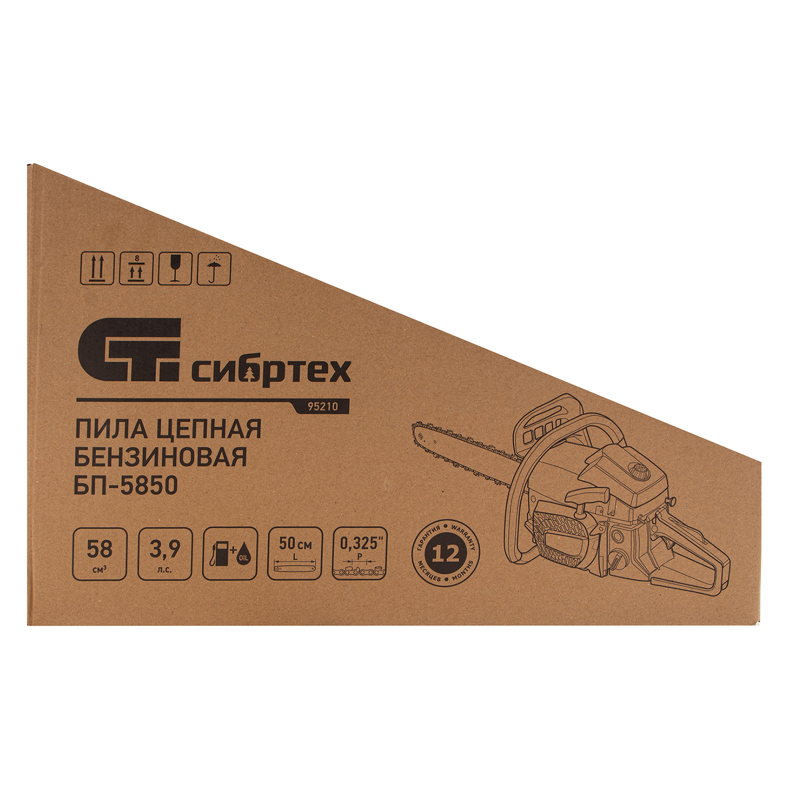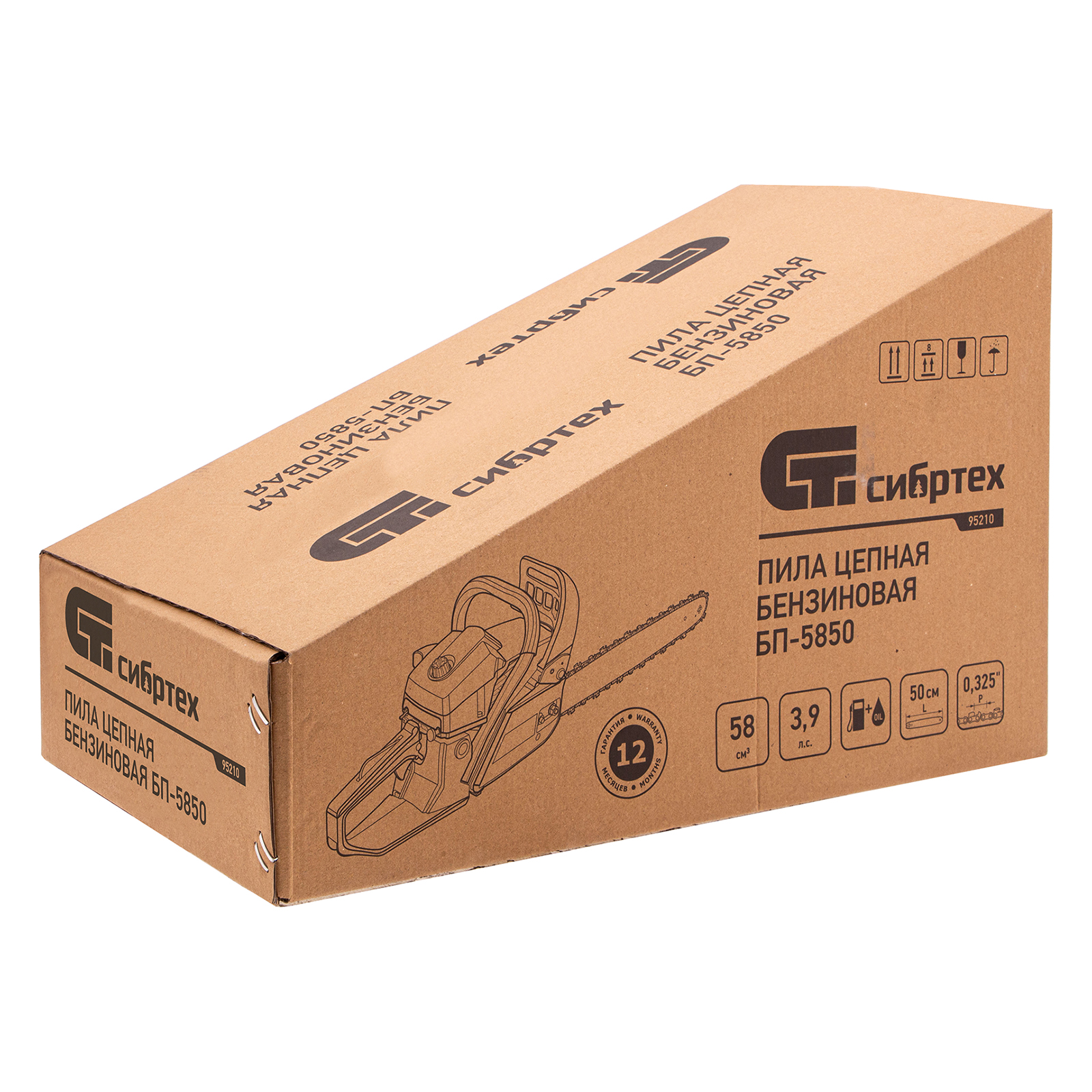 Пила цепная бензиновая Сибртех БП-5850 95210 с двухтактным двигателем объемом 58 см3 и мощностью 3,9 л.с предназначена для распиловки древесины различных пород, заготовки дров, спиливания веток и крупных сучков. Пригодится во время ремонта, строительства, благоустройства садового участка и при выполнении бытовых задач. Мощный и экономичный двигатель в сочетании с качественной шиной длиной 50 см (цепь с 76 звеньями с шагом 0,325 дюйма и шириной паза 1,5 мм) позволяют достичь наилучших результатов да.