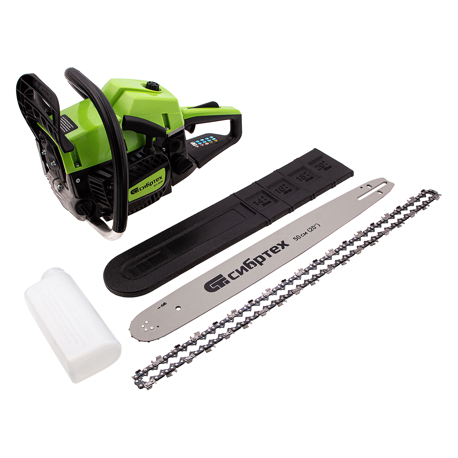Пила цепная бензиновая БП-5850, 58 см3, шина 50 см, шаг 0.325, паз 1,5 мм, 76 звеньев Сибртех в Уфе