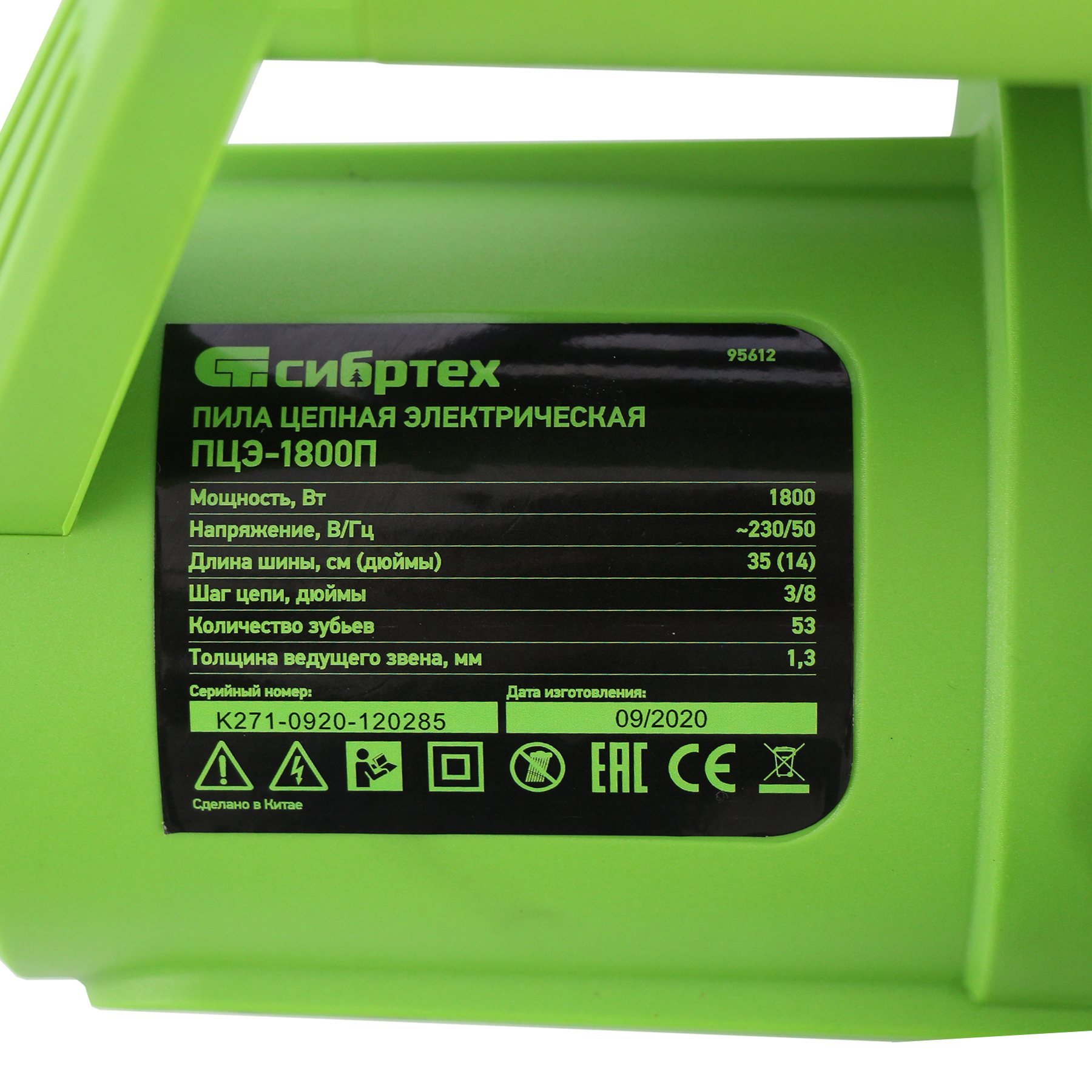 Пила цепная электрическая ПЦЭ-1800П с поперечным двигателем, 1.8 кВт, 14'' (35 см) Сибртех в Уфе