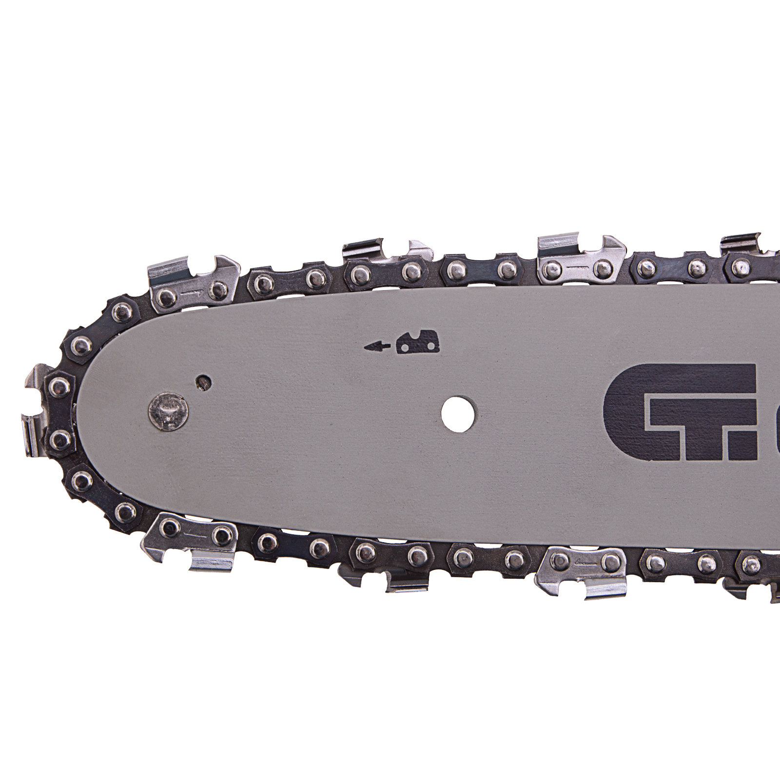 - Бесключевое натяжение цепи — регулировка осуществляется вручную при помощи винта на боковой части корпуса, использование инструментов не требуется.