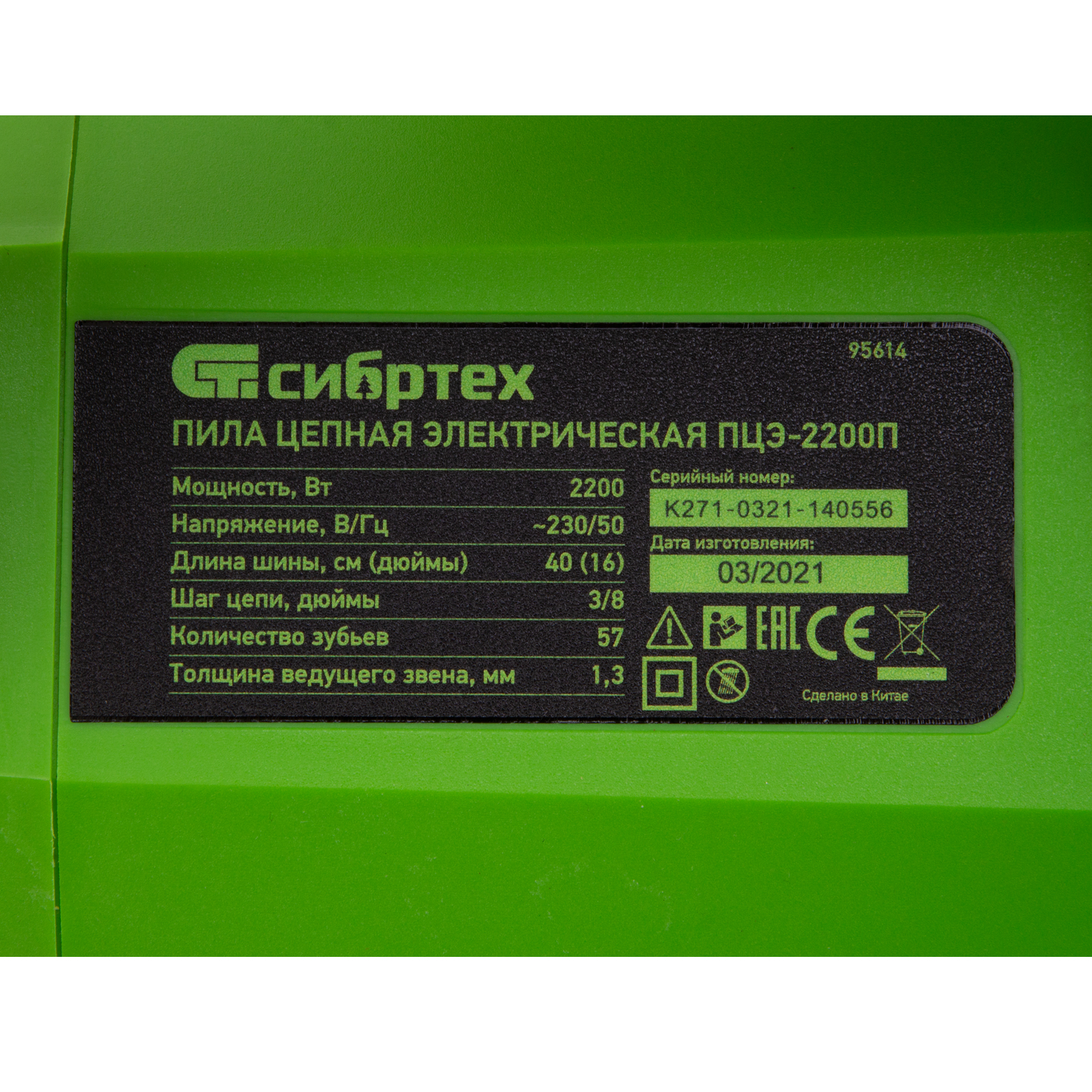 Пила цепная электрическая ПЦЭ-2200П с поперечным двигателем, 2.2 кВт, 16'' (40 см) Сибртех в Уфе