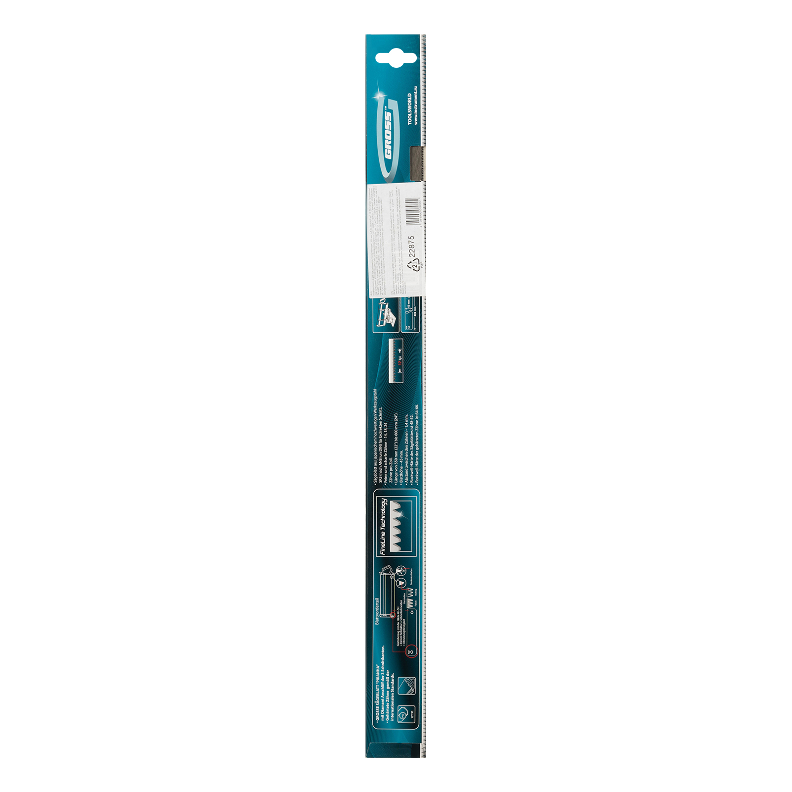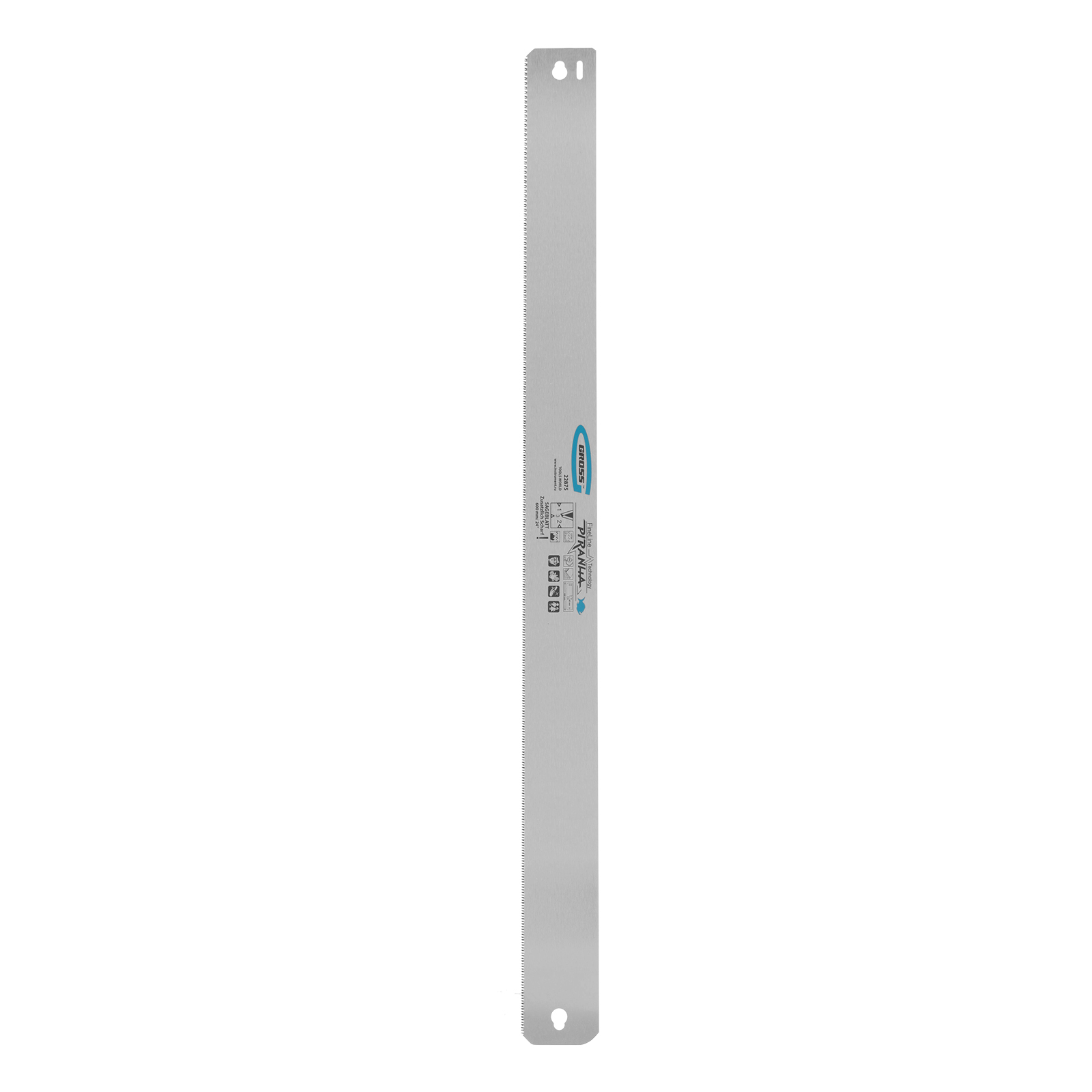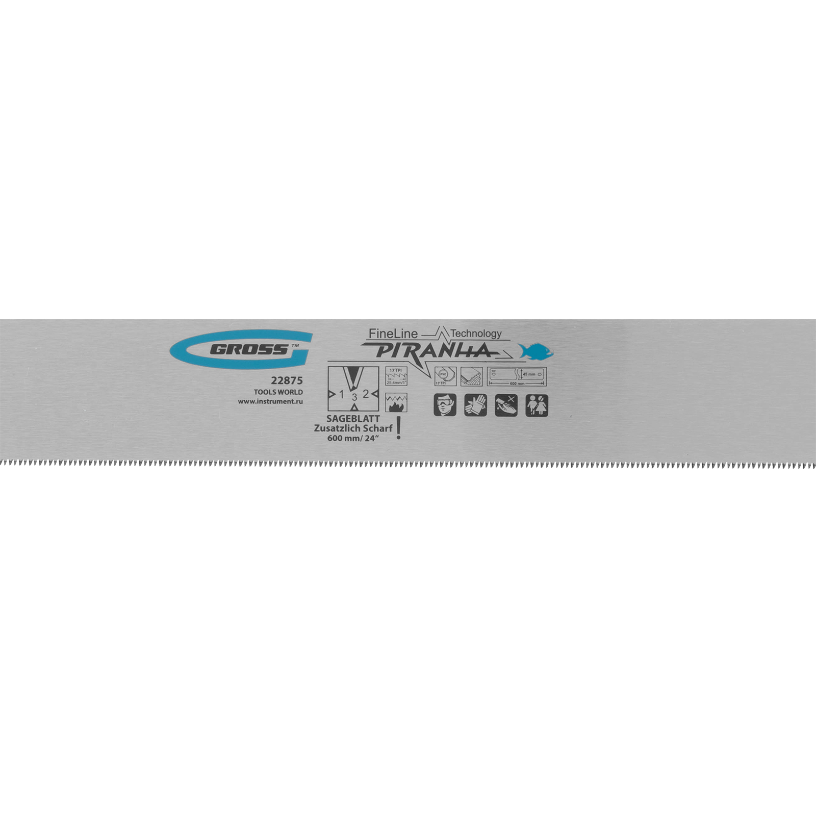 Пильное полотно Gross «PIRANHA» 22875 длиной 600 мм, с каленым зубом с 3D-заточкой, 18 TPI — режущий элемент для прецизионного стусла, применяемый для распила под углом заготовок из дерева, мягкого металла и пластика. Мелкие зубья с шагом 18 TPI позволяют получить точный и чистый рез. Полотно используется для пиления плинтусов, реек, дверных наличников и других деталей.